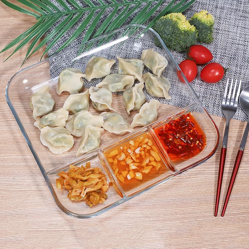 صحن زجاج مقسم مصنوع من مادة زجاجية ، مثالي للأرز والباستا والسلطات والحبوب وغيرها من الأطعمة ، إنه طبق طعام رائع لمنزلك .