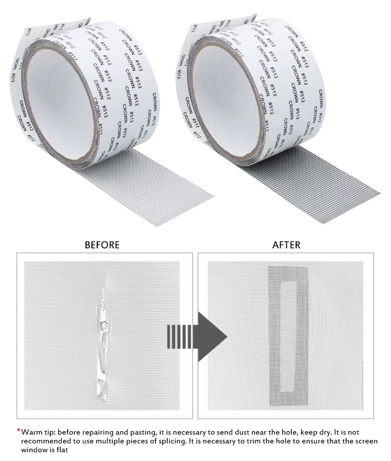Fix holes and tears in window screens, screen doors, tent mesh, pool screens, RV screens etc.