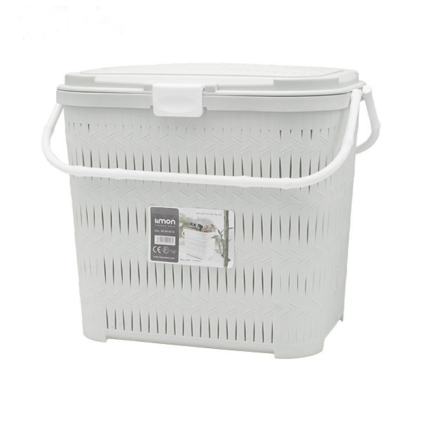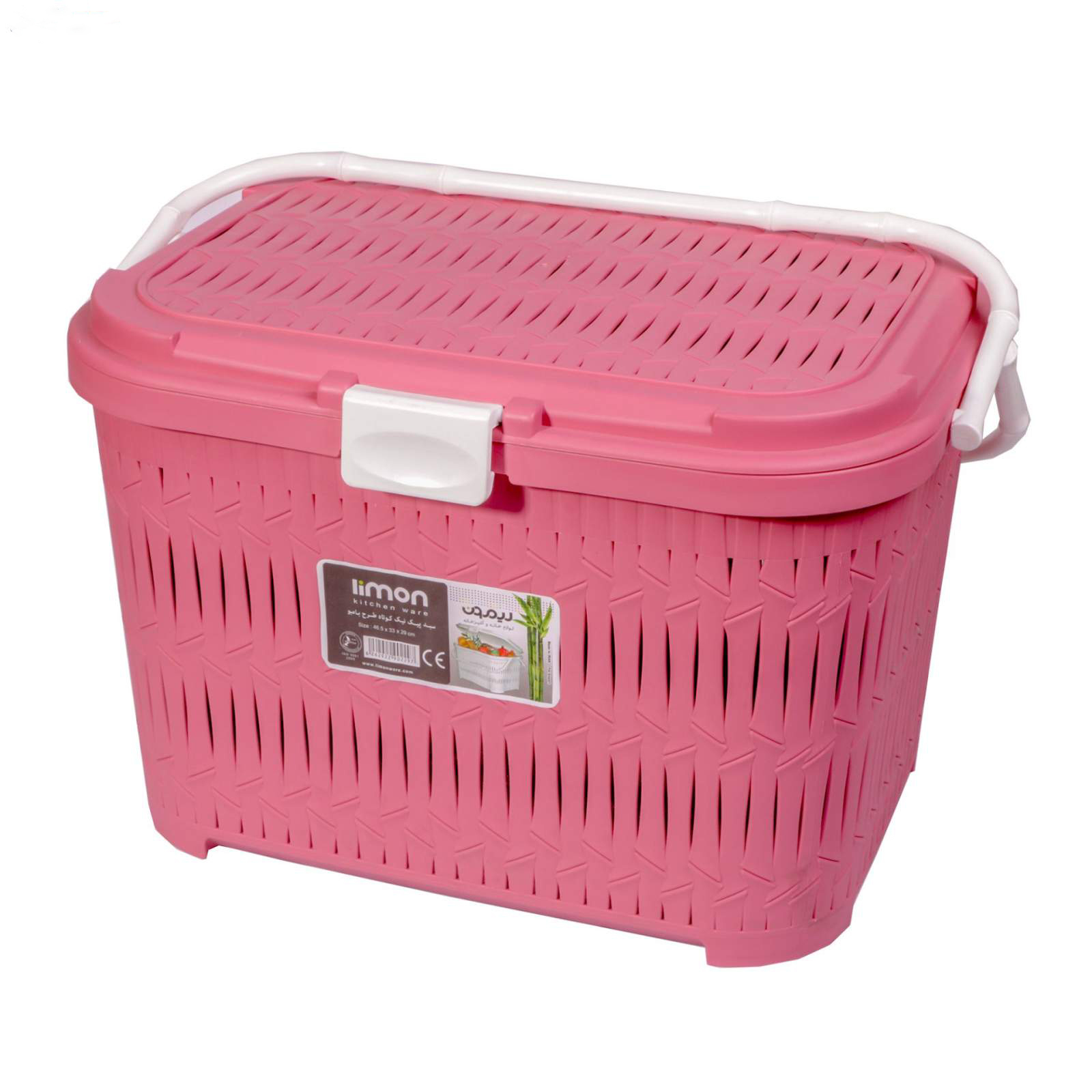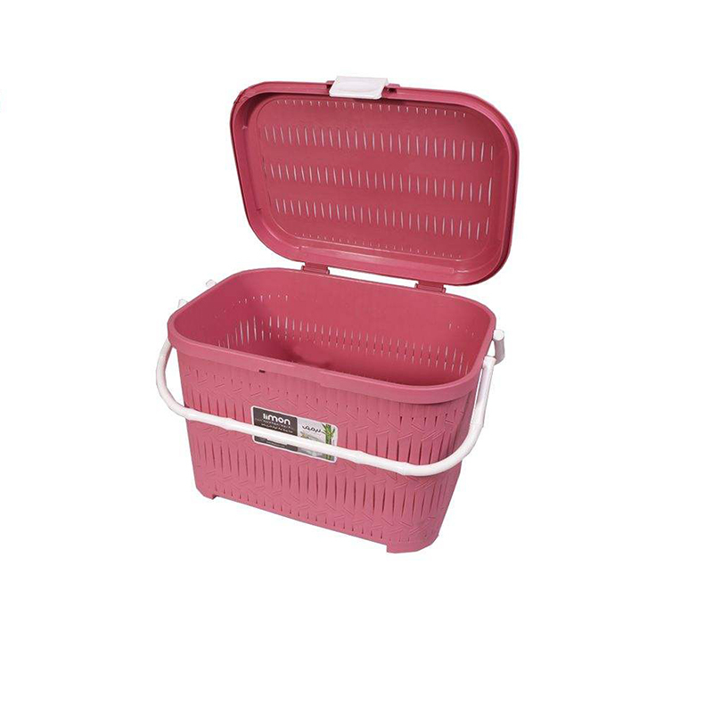 A multi-use bamboo model plastic basket from limon with a beautiful design made of high-quality plastic with a handle for easy carrying in the hand and a tight-fitting lid, used for storing food and other products during picnics.