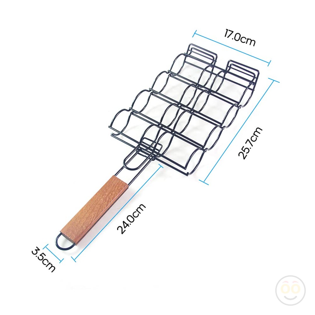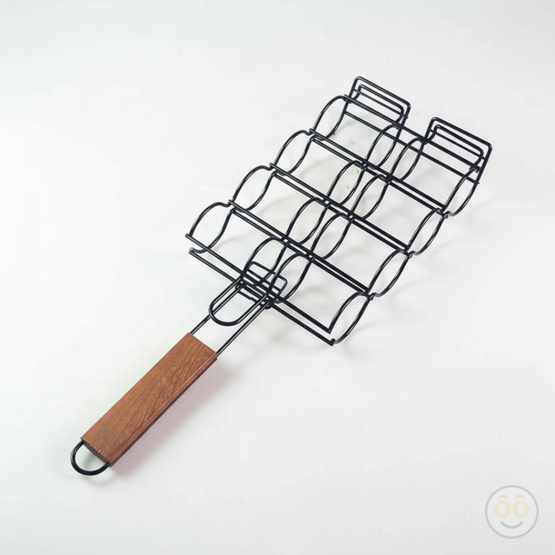 Anti-scalding wooden handle, comfortable grip, fix the upper grilling net, reverse does not slip. Tail ring design, easy to hang and store.