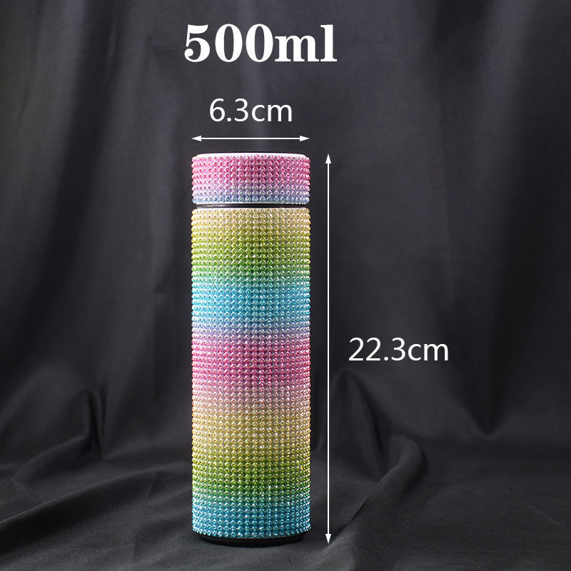 500ML Bling Diamond Digital Thermos Bottle Stainless Steel Water Bottle with Temperature Display Vacuum Flask Coffee Mug Adult Gift.