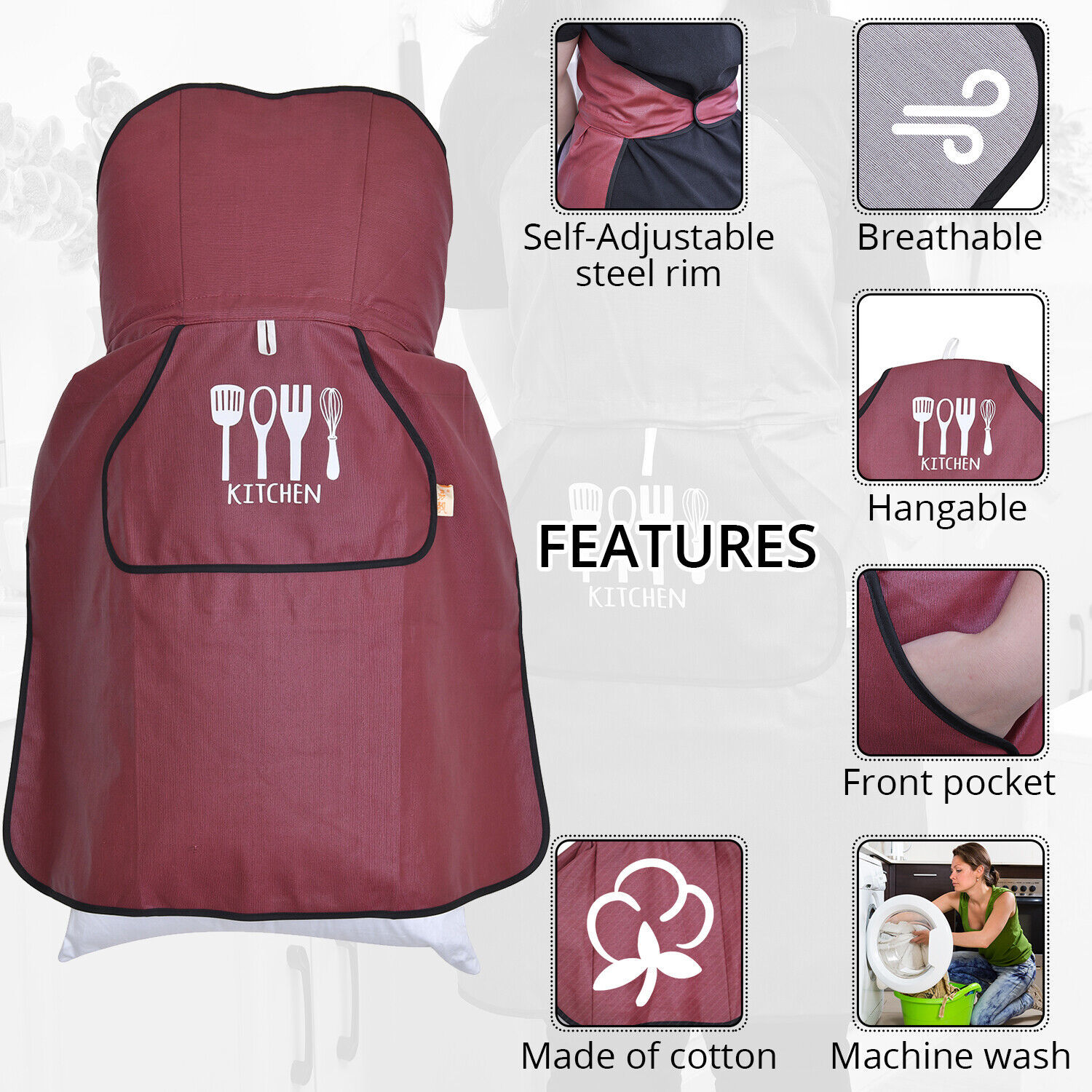 FRONT POCKET: Front pocket is equipped to facilitate you proper space to keep your kitchen essentials with you