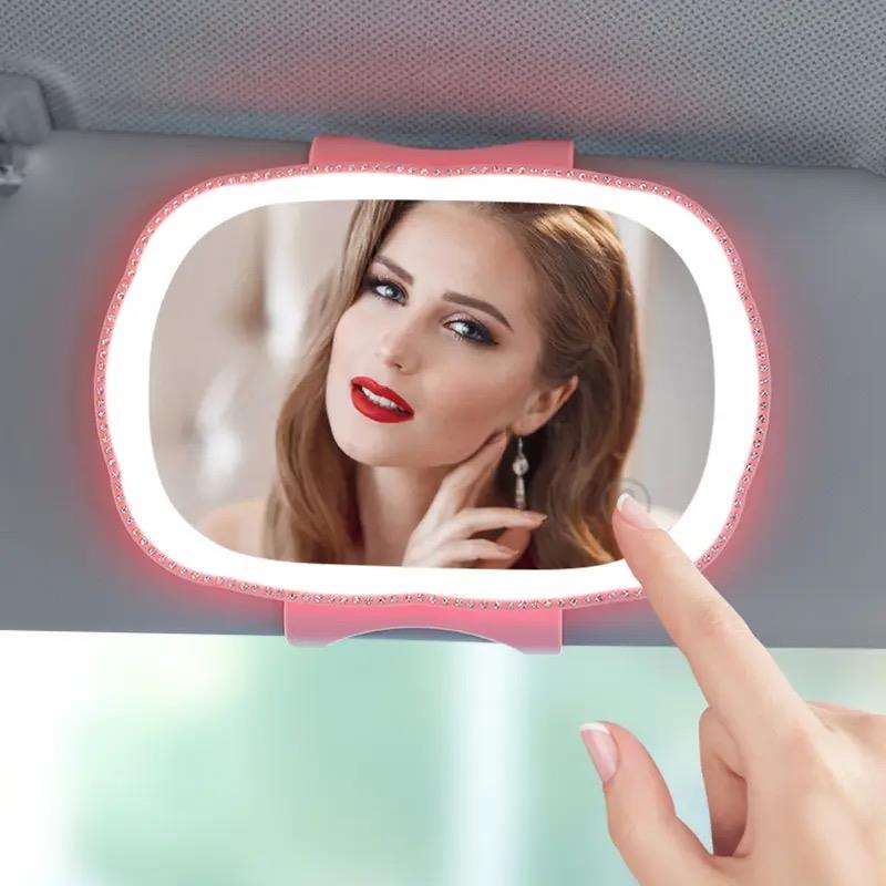High-quality material: real glass, high-definition mirror, smooth and durable, clear and visible 2. Touch light: capacitive touch screen light, a touch control switch, illuminate your beauty. 3. One-key dimming: long press can adjust the brightness of the light to meet the clarity requirements of different makeup and skin care. 4. Easy retraction and retraction: does not affect the opening and closing of the sun visor, does not block the driving line of sight, and is convenient to use. 5. Simple Installation: The built-in spring clamp is firmly installed and is not easy to fall off. It can be removed when not in use. It is applicable to most models 6. In-car charging: UCB fast charging, equipped with a USB charging cable, convenient and fast.