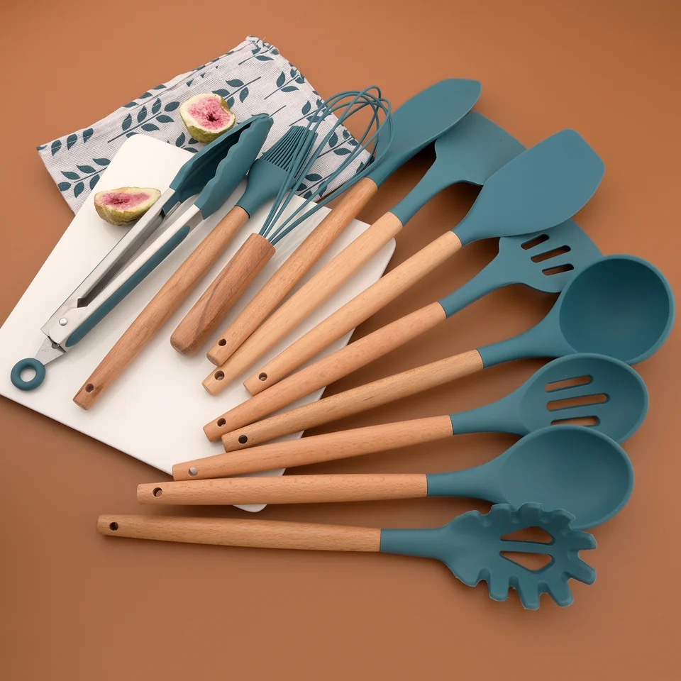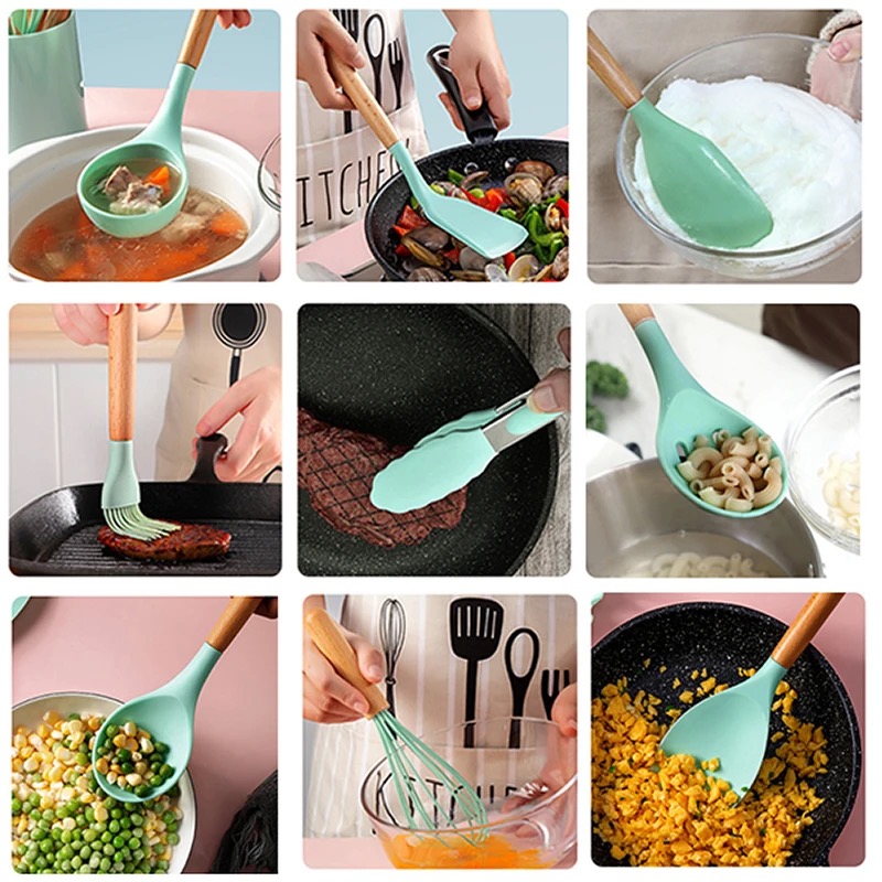 5.One set of silicone cooking utensils could meet all needs for food. They will help you to enjoy the tasty food quickly.
