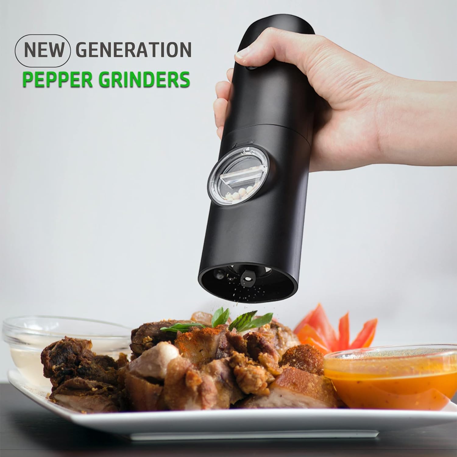 One-click activation, just simply turn upside down and get fresh ground salt or pepper. The LED light will turn on automatically when the grinder is in operation.