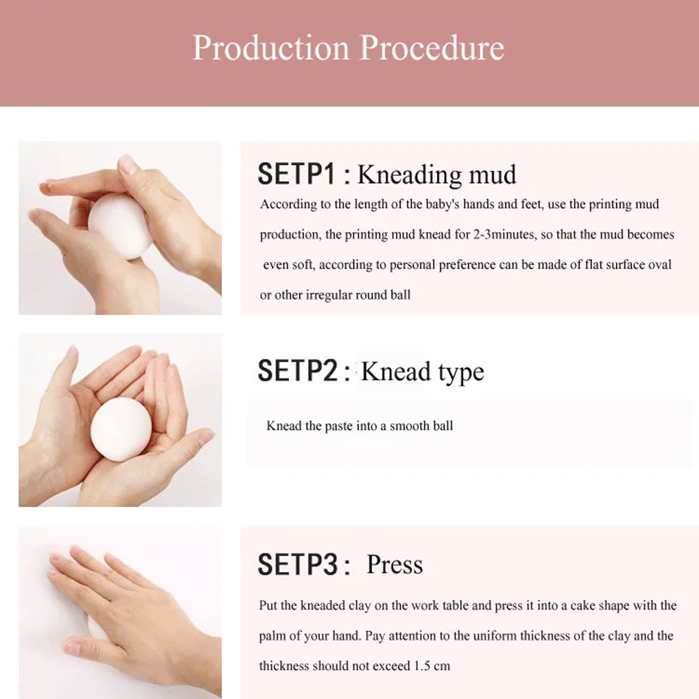 Knead the ink pad for about 1 to 2 minutes to make the ink pad even and soft, which is conducive to the later effect. According to the length of the baby's hands and feet, take an appropriate amount of ink pad to use.