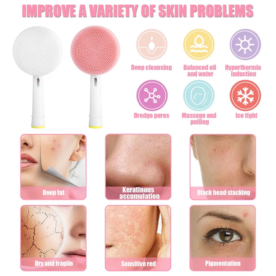 Slightly thick silicone bristles on the top-a large area of slender silicone bristles more detailed clean the dead corners of the skin, targeting a large area of the forehead, and more comprehensively cleaning the skin pores.