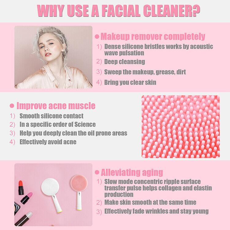 Clean Pores and Refresh Skin-- Dense silicone bristles work by acoustic wave pulsation for deep cleansing face, easily sweep off makeup, grease and dirt, visibly cleaner skin and improve acne.