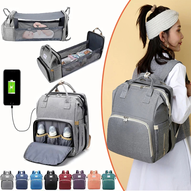 The smart organizer system has separate storage bags for feeding bottles, water bottles, baby clothes, baby diapers, towels.