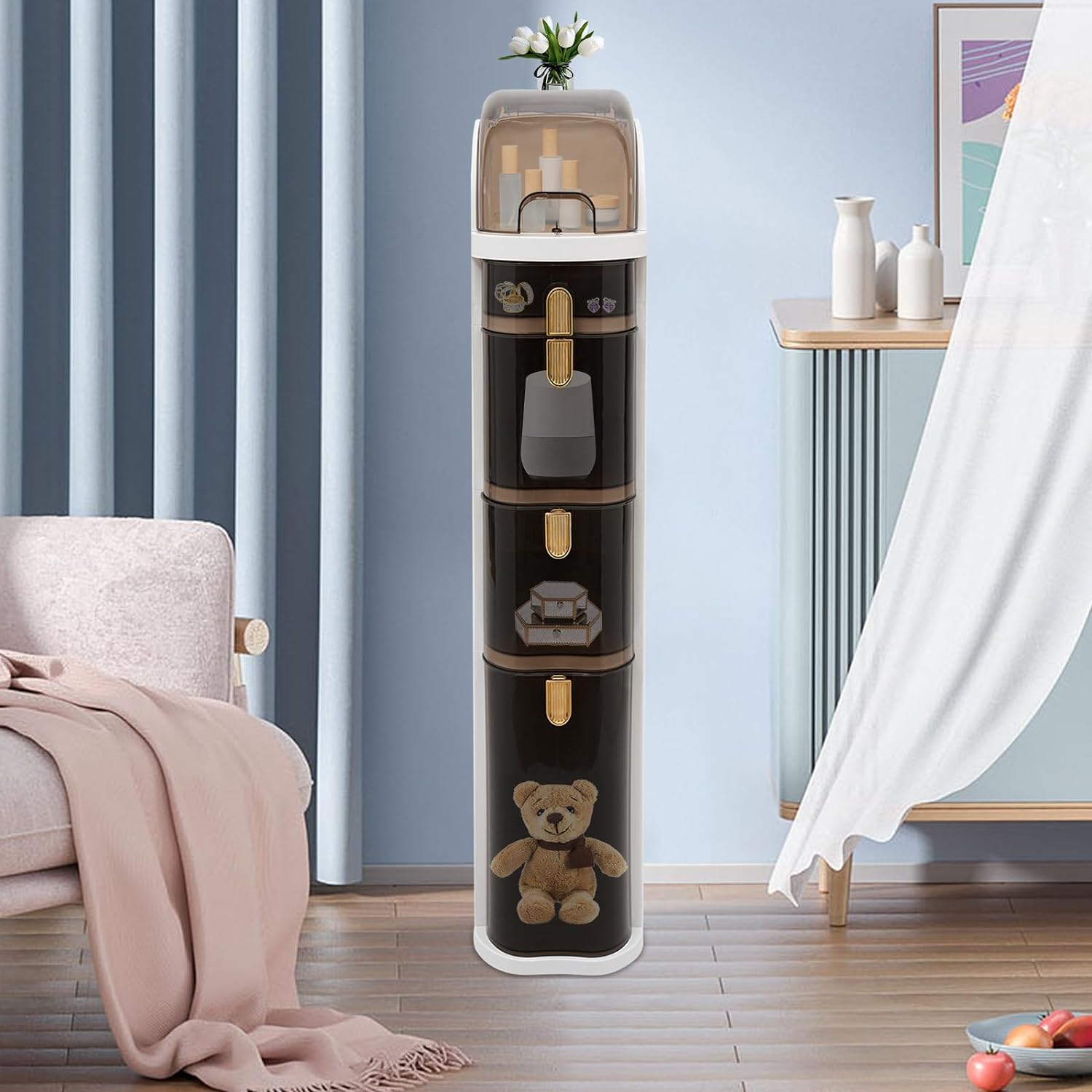 【Humanized Design】Semi-clear drawers and top lid allow you to see items stored inside at a glance and easily access the items you need. The top lid adopts a flip design, making it easier to retrieve items.
