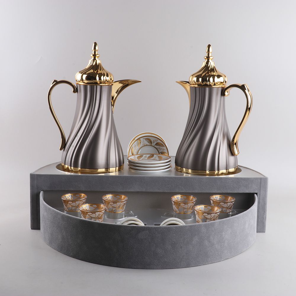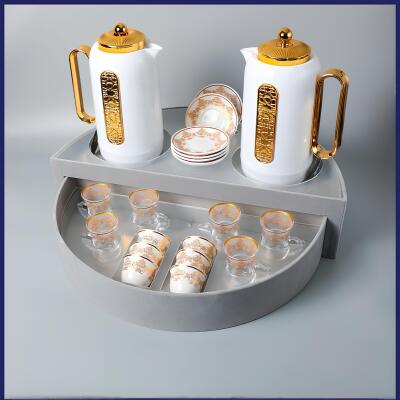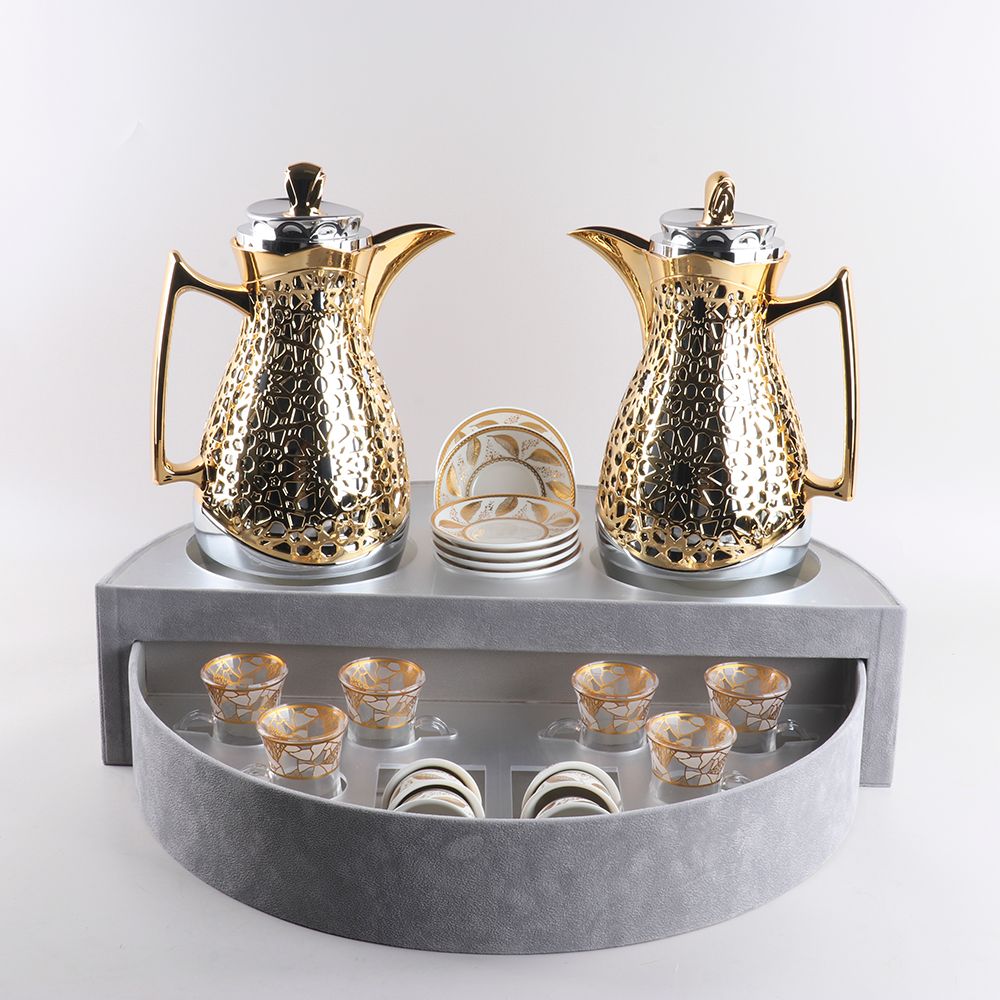 Includes compartments for 6 tea cups, 6 cahwa cups, 6 plates, 2 flasks, and 1 sugar bowl.