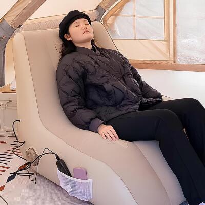 [Built-in Rechargeable Air Pump] Unlike ordinary camping sofas that need to be connected to a 220V AC wall plug to inflate, our camping sofa has a built-in innovative air pump. After 5 hours of charging using the included USB cable, the pump works for 50 minutes, with full inflation taking just 3 minutes each time. No need to worry about outdoor charging. No additional air pump required. The rechargeable air pump is compatible with power banks and wall charging.