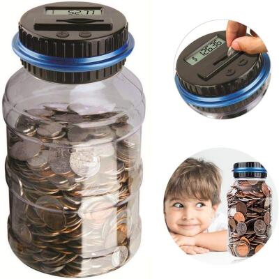 This clear jar has an LCD screen on a lid helps count your coins as they slip through the slot.