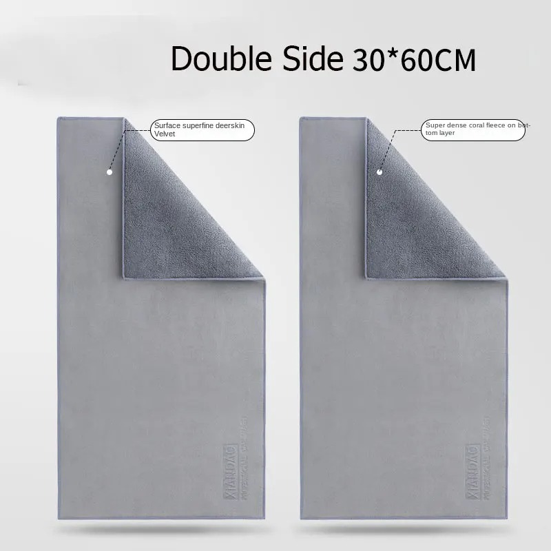 Double-Sided Texture: One side with coral fleece for stain cleaning and the other with smooth suede for a shiny, streak-free finish.