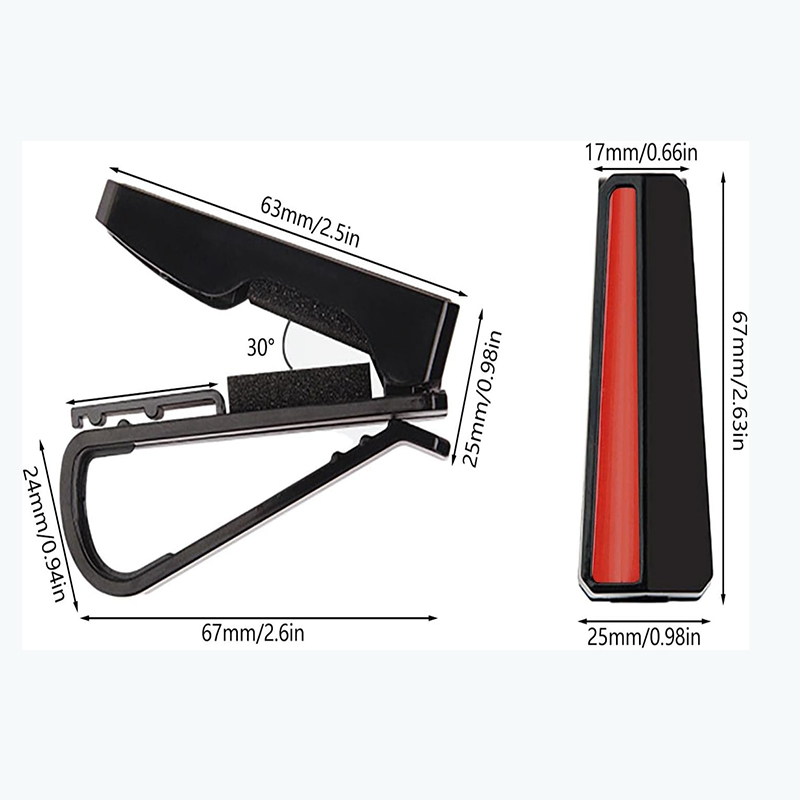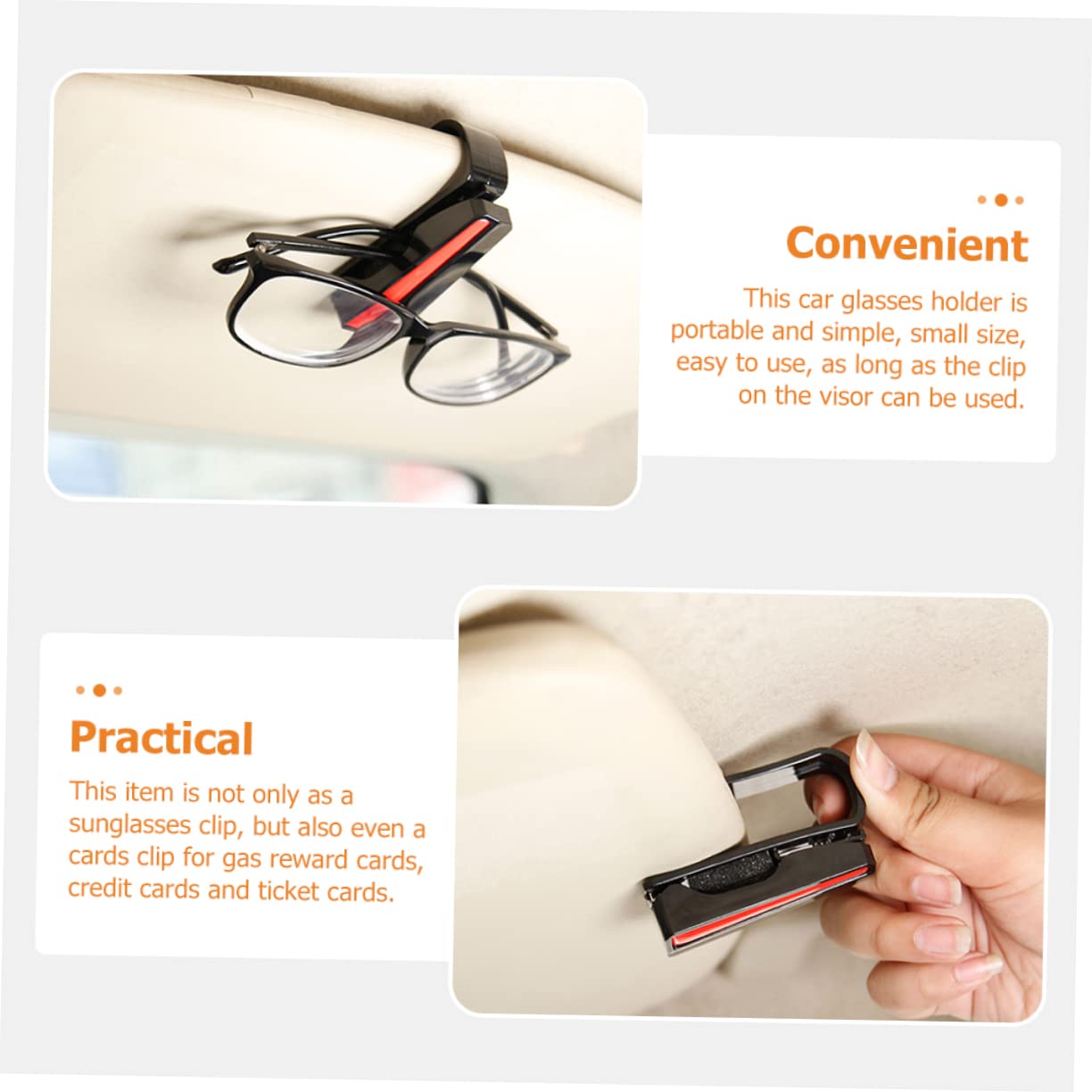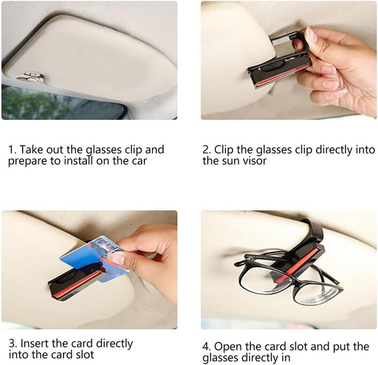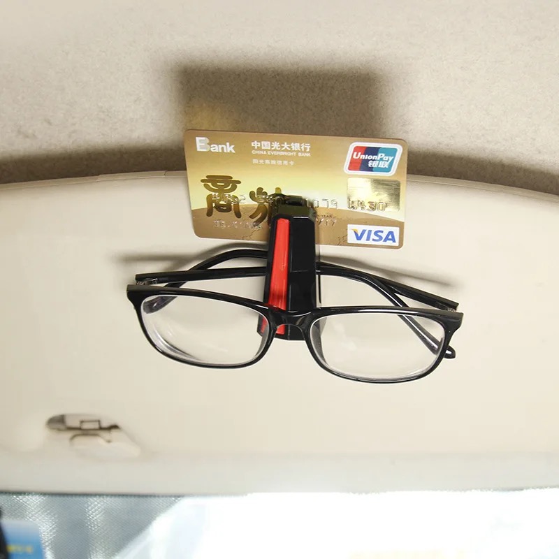 Sun visor glasses holder enable to clip 1 pair of glasses and an extra card and keep your glasses away from dropping, scratching, missing.