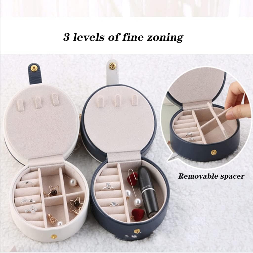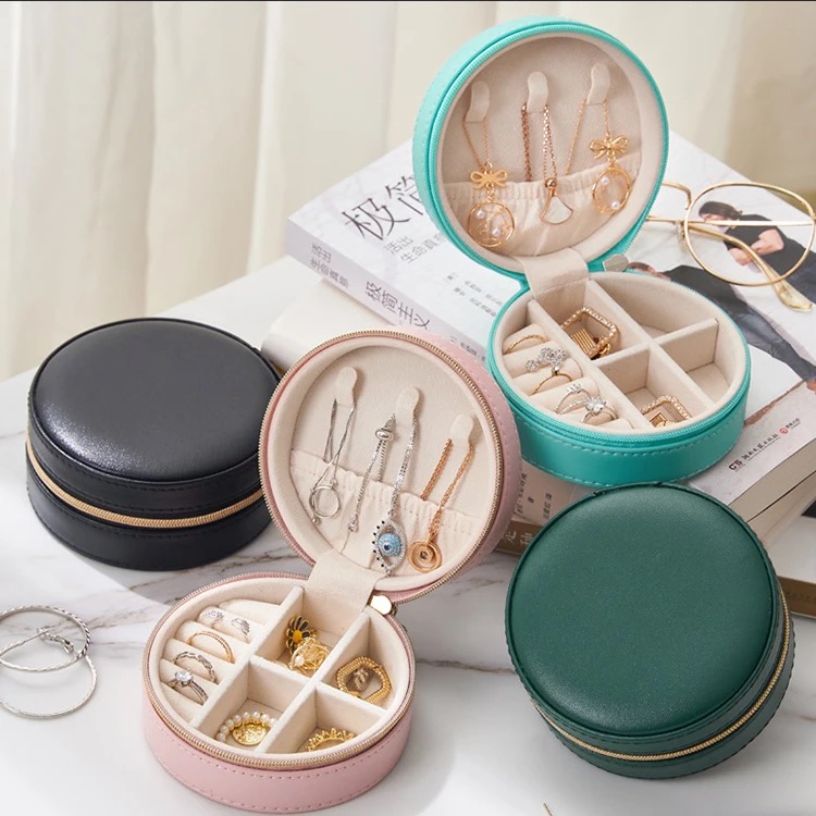 The round faux leather jewellery box can be well used to store jewellery, necklaces, rings, beads, bracelets, earrings, earrings, watches, lipsticks and many others you need.
