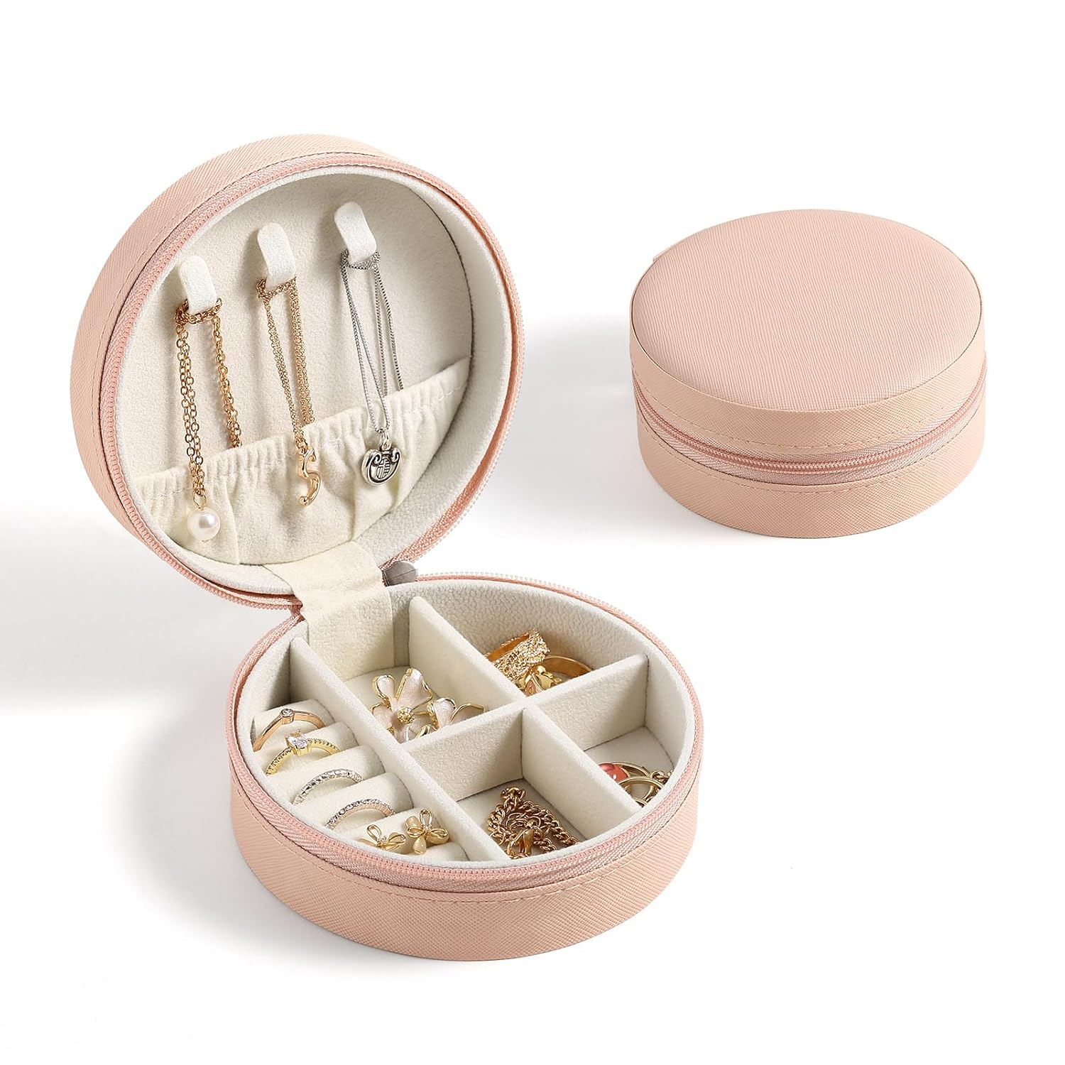 The round jewellery box is made of high-quality PU leather, sturdy, durable and multi-purpose. Elegant round design, with a side zipper which is easy to use and looks classic, with velvet interior which can protect your jewellery from scratches and damage.
