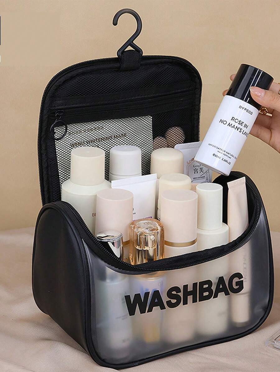 A transparent cosmetic bag is perfect for keeping your beauty essentials stored neatly and for easy identification.