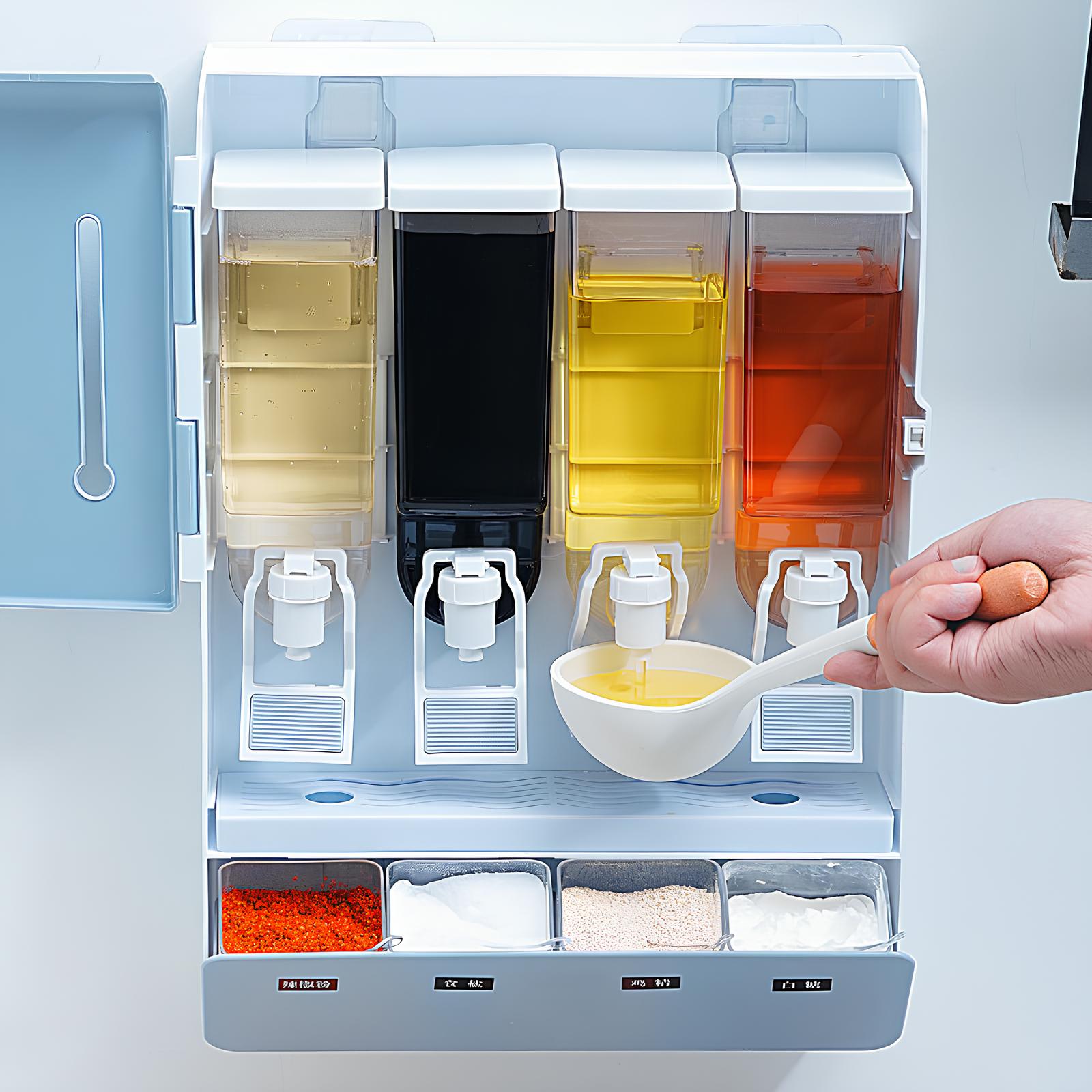 Space Saving With this spice box, you can centrally store a variety of liquid and solid spices, saving you more space in the kitchen, keeping your kitchen tidy and clean, and meeting your kitchen storage needs.