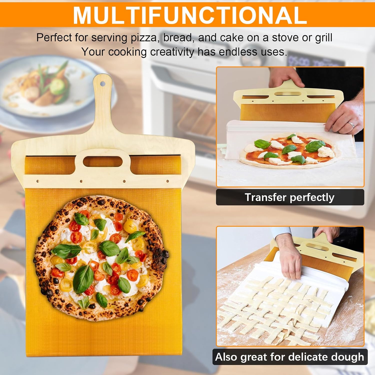 【One-Step Pizza Lifting】Lift your pizza effortlessly with 1 simple action using our sliding pizza peel. Prevent sticking and enjoy easy pizza removal from the oven.