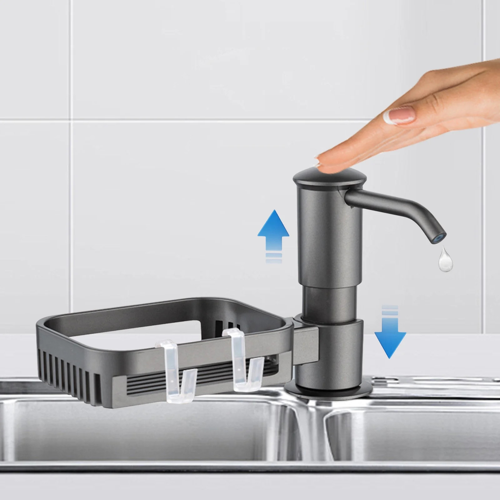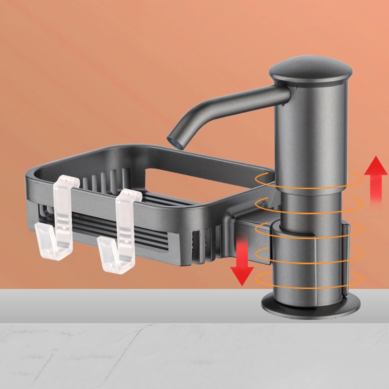 [Practical Shelf Extension]: Our soap dispenser with extended hose comes with a built-in shelf, giving you extra storage space for small items in your kitchen. Say goodbye to cluttered countertops and keep your kitchen organized effortlessly.