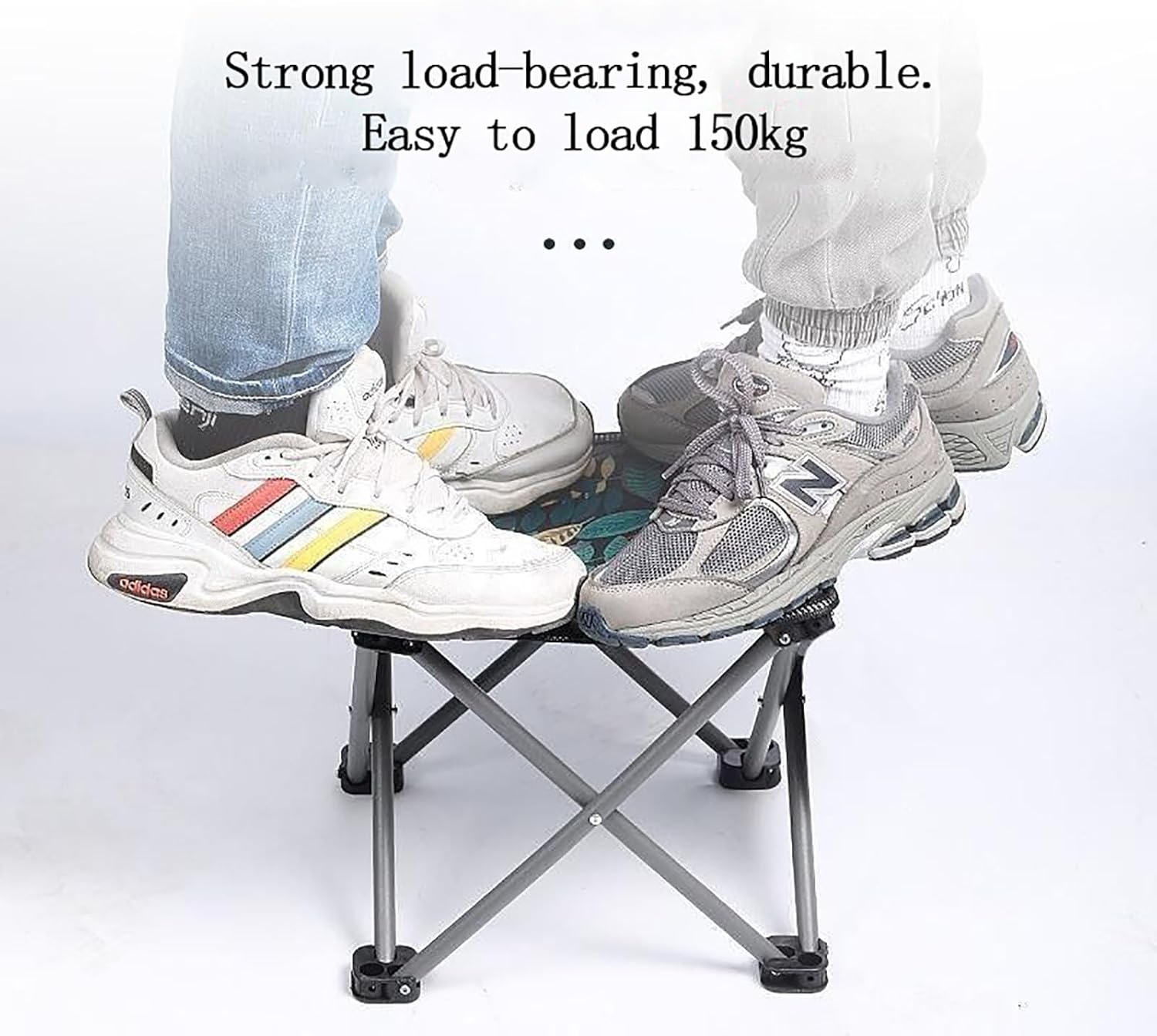 Strong and Durable: The surface of the folding camping stool is made of double-layer waterproof 600D Oxford cloth, which is very thick, wear-resistant and sturdy. The bracket is made of high-quality painted metal, corrosion-resistant and rust-proof, very strong. The folding stool can hold up to 120kg, suitable for both adults and children.