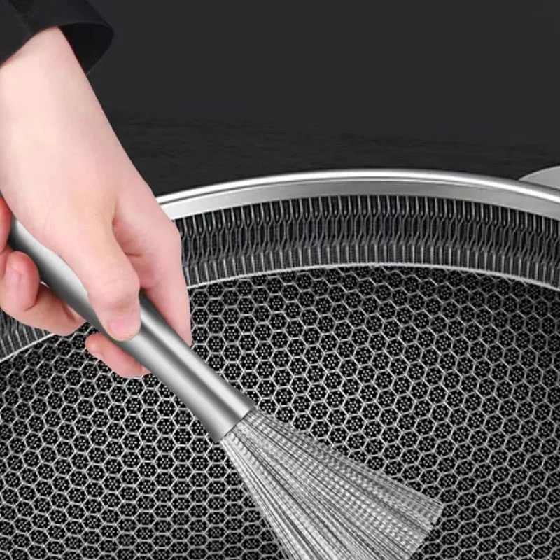 The kitchen WOK brush cleans dishes, cast iron pans and other stubborn stains. -Rust-resistant, strong, widely used to clean pots, pans, ovens, skillets, grills, bottles,