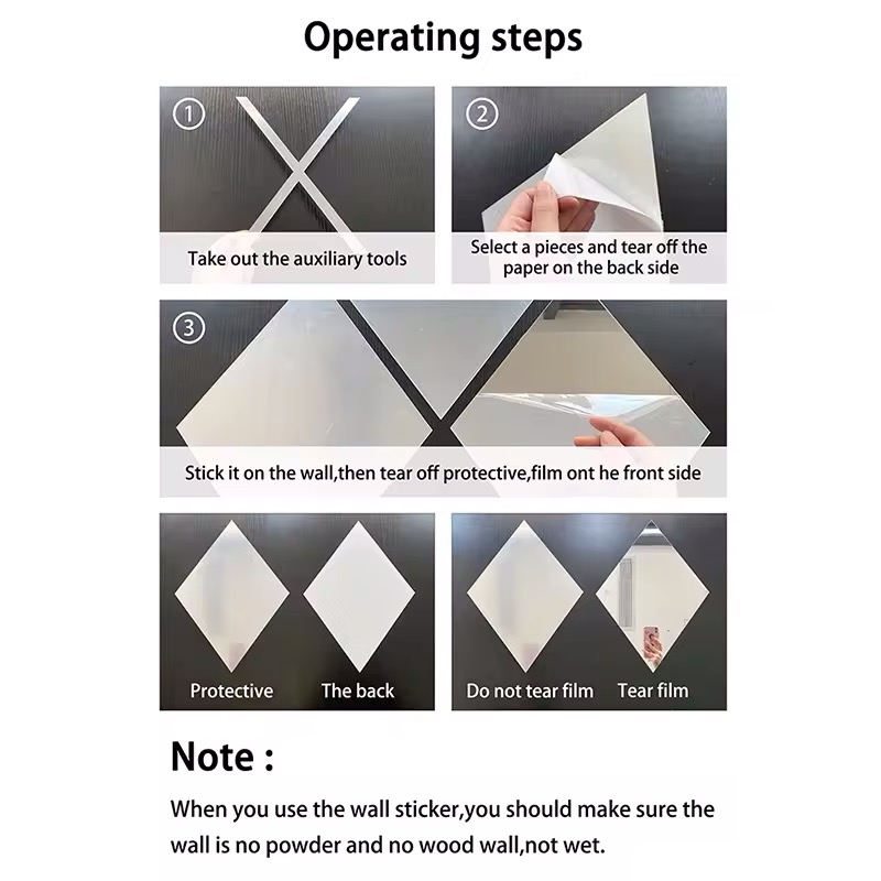 Material: Acrylic (Strong Backed Self-adhesive, Mirror Surface Protected by Transparent film)