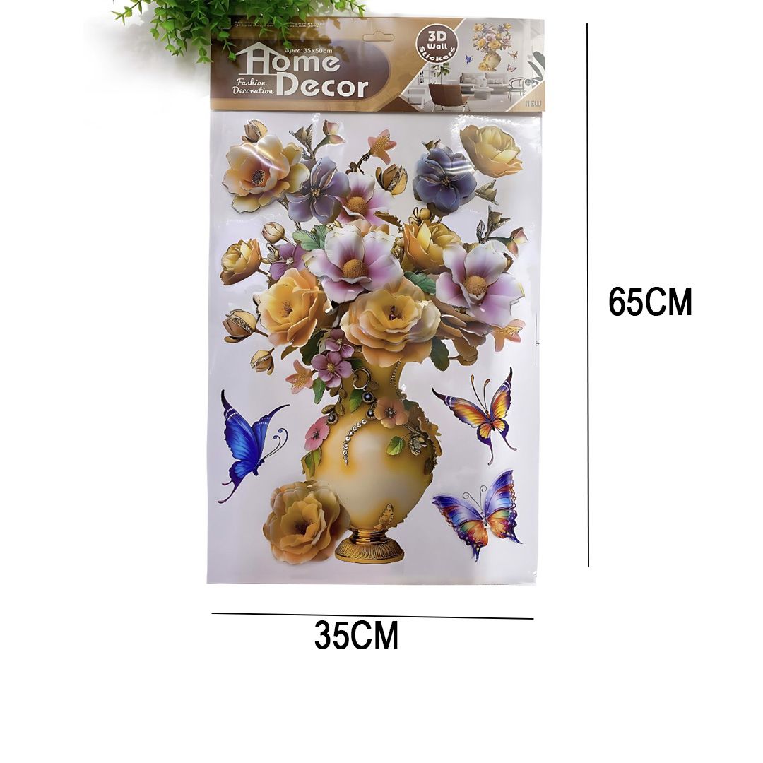 The pattern of the wall stickers is a Chinese butterflies vase. Peony flowers in the gold vase look very elegant and noble.