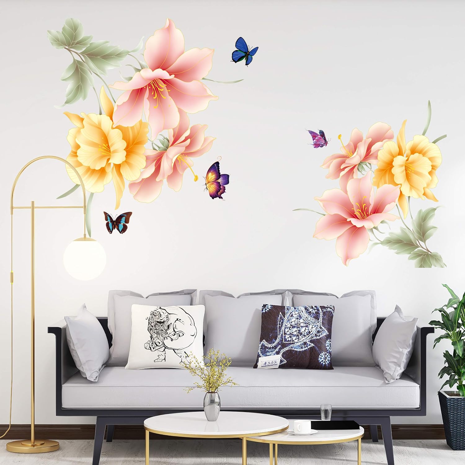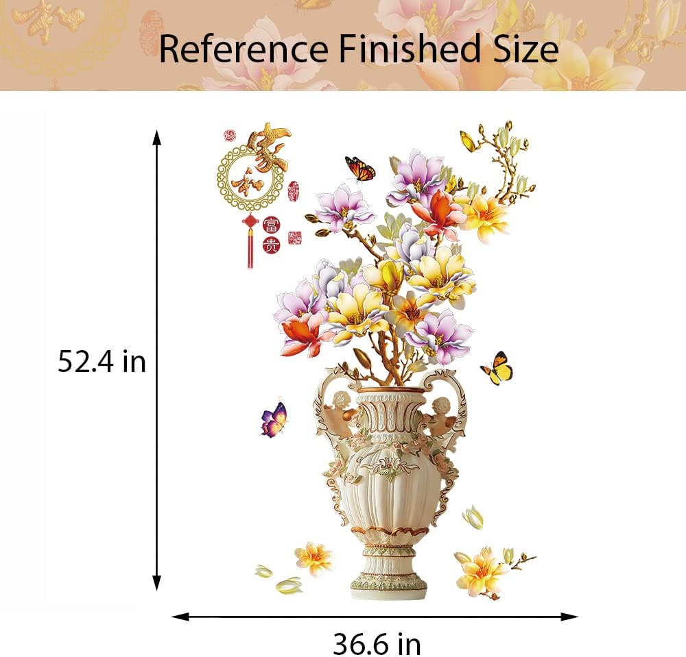 The pattern of the wall stickers is a Chinese butterflies vase. Peony flowers in the gold vase look very elegant and noble.