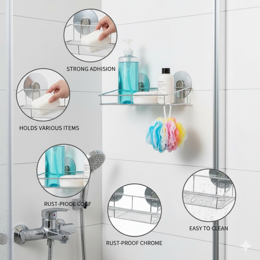 Strong Holding Capacity: Supports up to 8kg—perfect for storing shampoo, conditioner, body lotion, and shower gels securely.