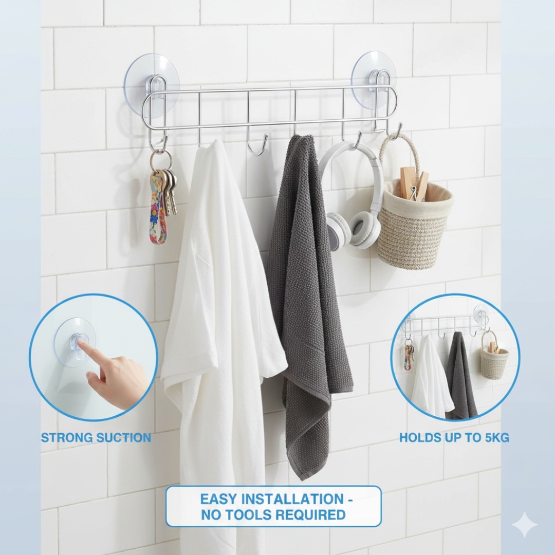 Powerful Suction Design: Features strong vacuum suction cups that securely attach to smooth surfaces without drilling or damaging walls.