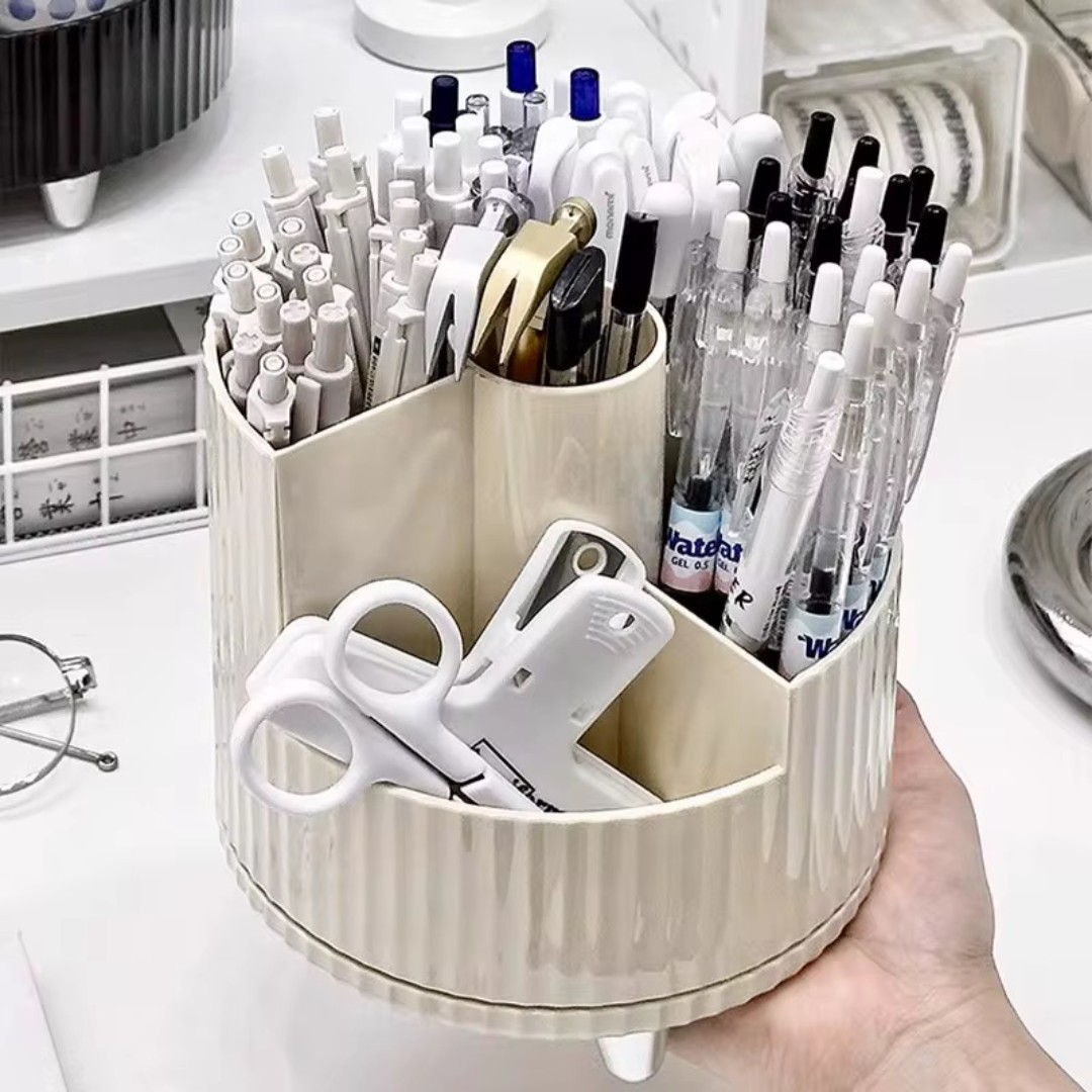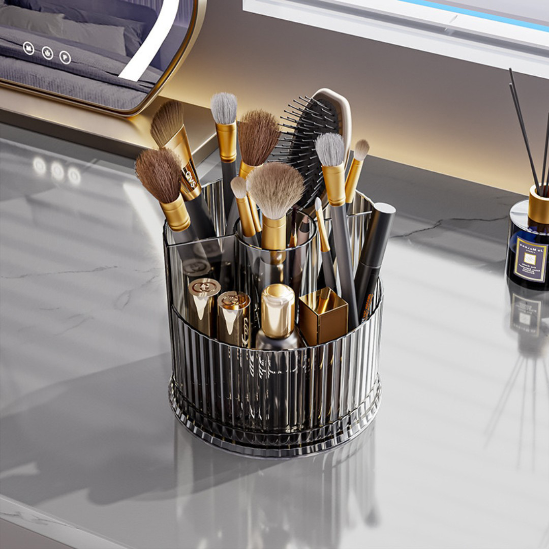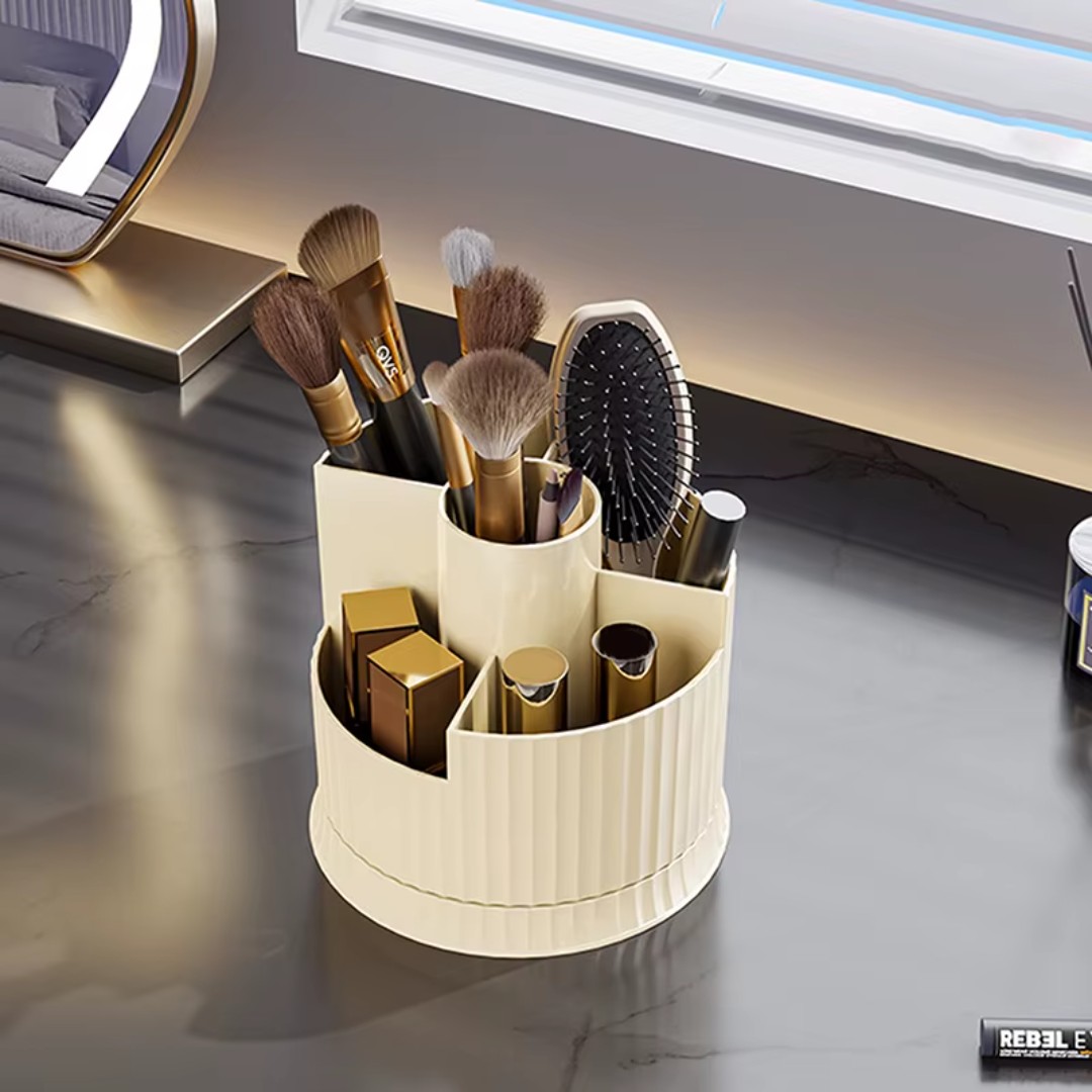 360° Rotating Organizer: Smooth rotating base allows easy access to all compartments, keeping makeup brushes, pens, and beauty tools neatly within reach.