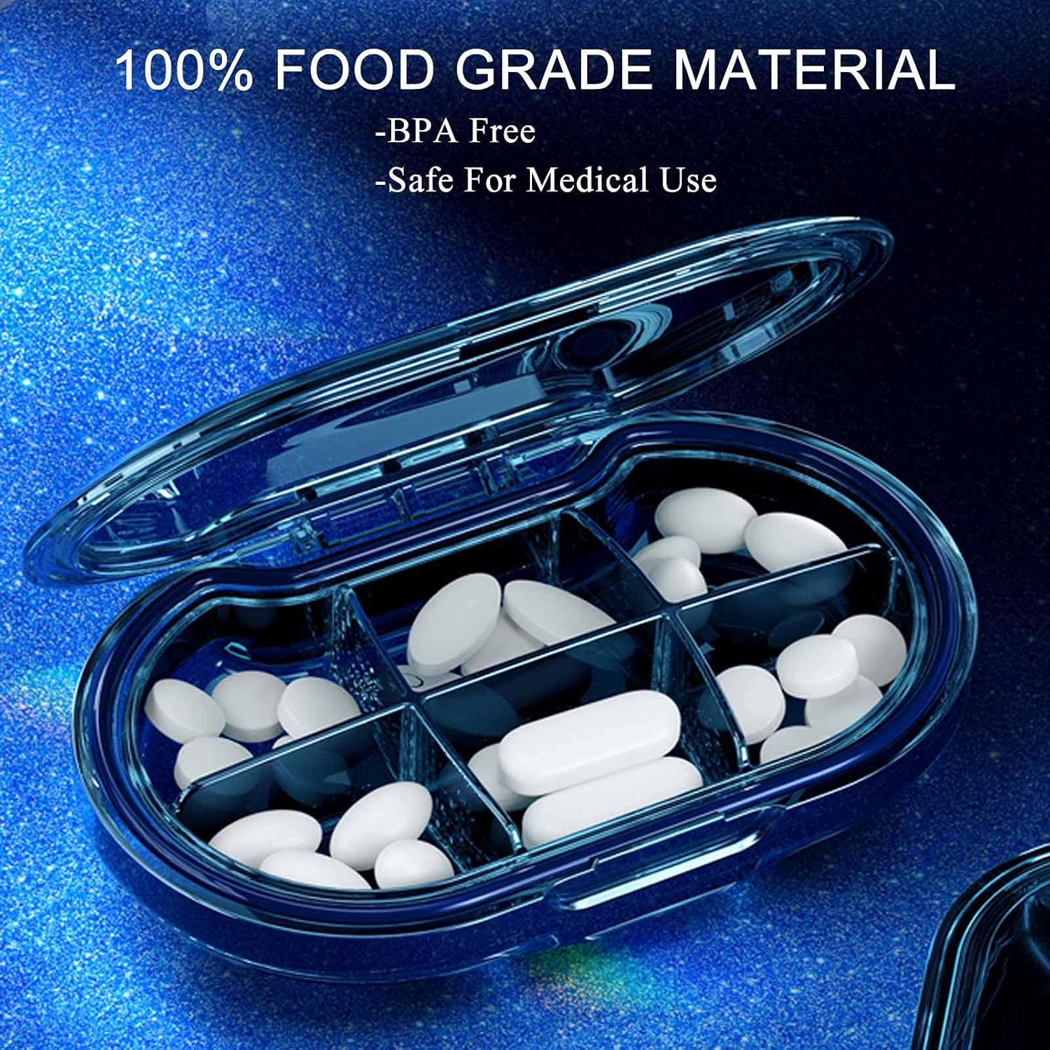 【Healthy Material】Our pill container made of high-quality Waterproof Plastic+ Silicone material, ensure your safety. Dustproof, waterproof, moisture-proof, light weight, non-toxic and easy to clean.