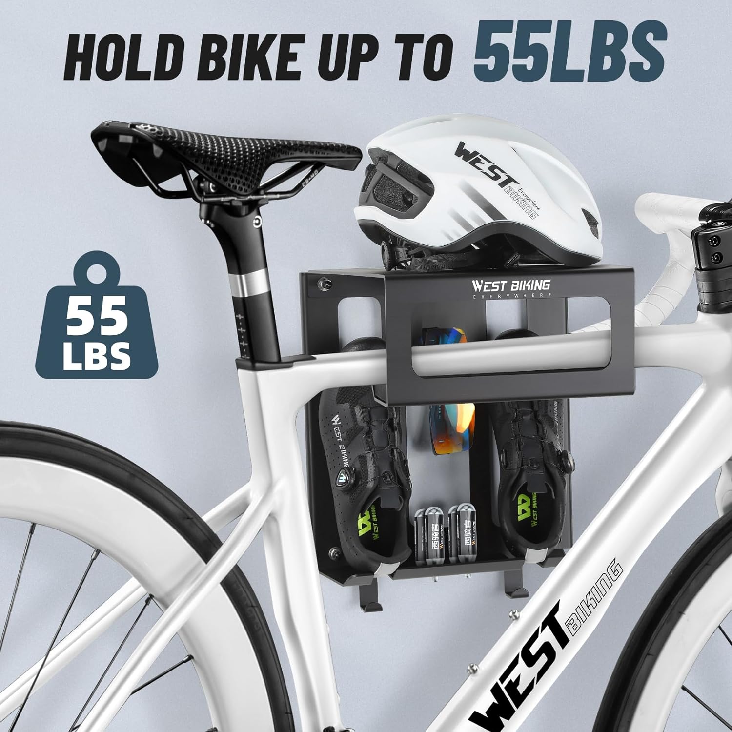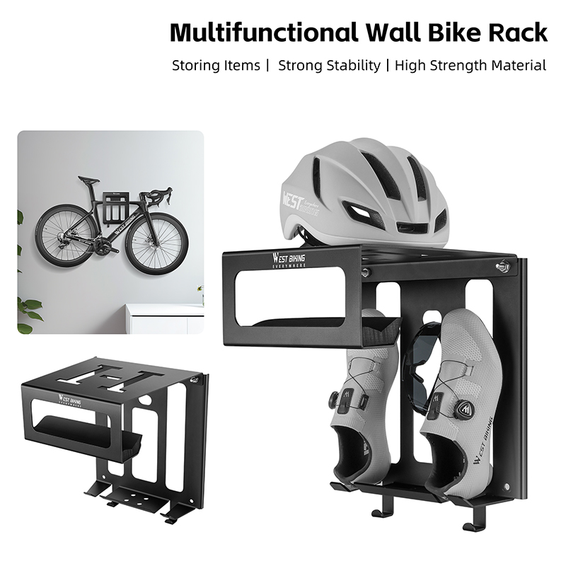 It comes with shelves and an integrated hook that offer plenty of storage for your cycling essentials such as helmets, shoes, locks and keys.