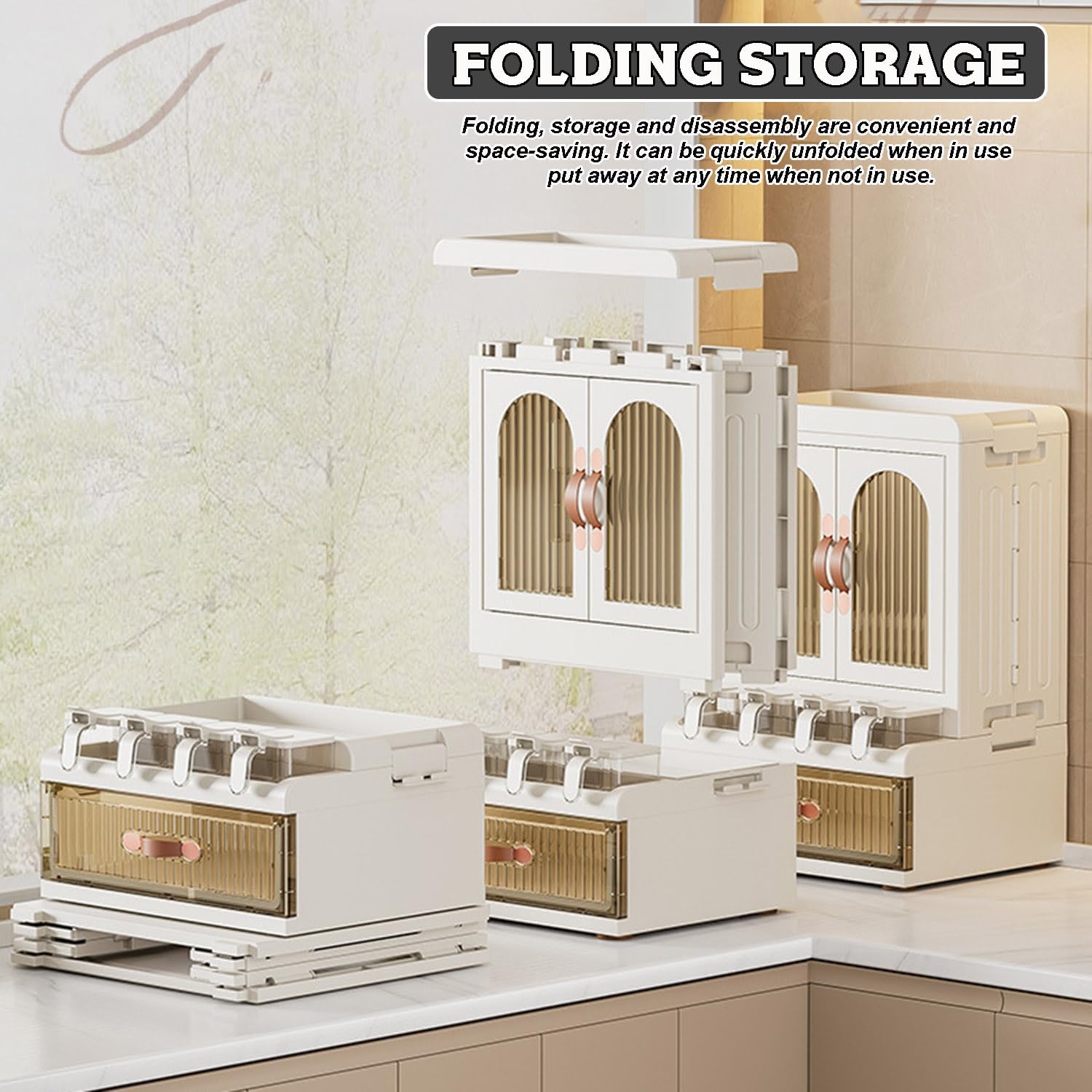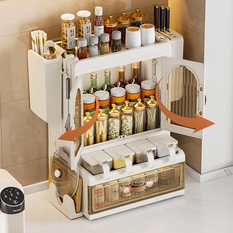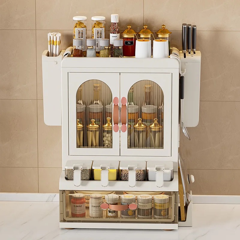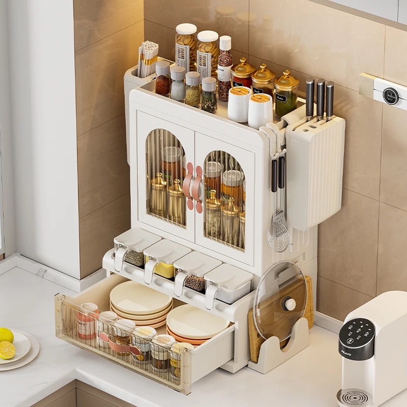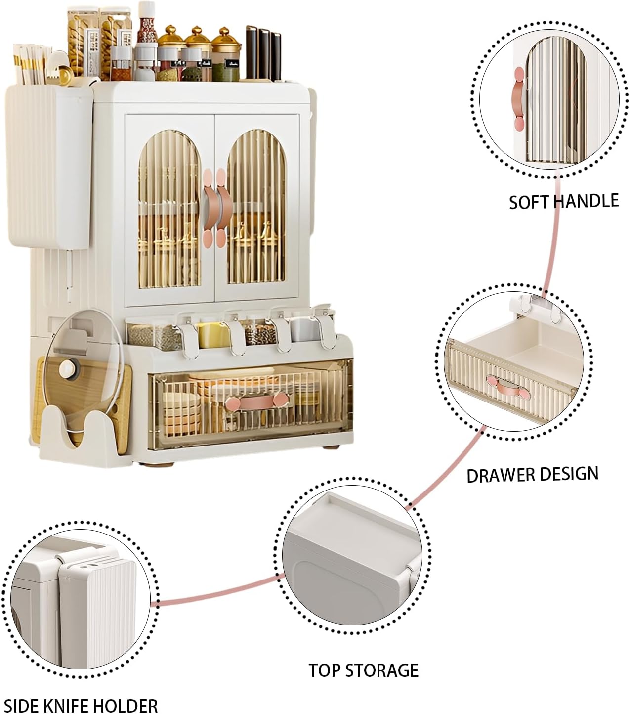 【Strong load-bearing capacity】Premium PP cabinet body, Hanging Space, Seasoning Space, Drawer Space, allows the product to accommodate heavier items without worrying about collapsing.