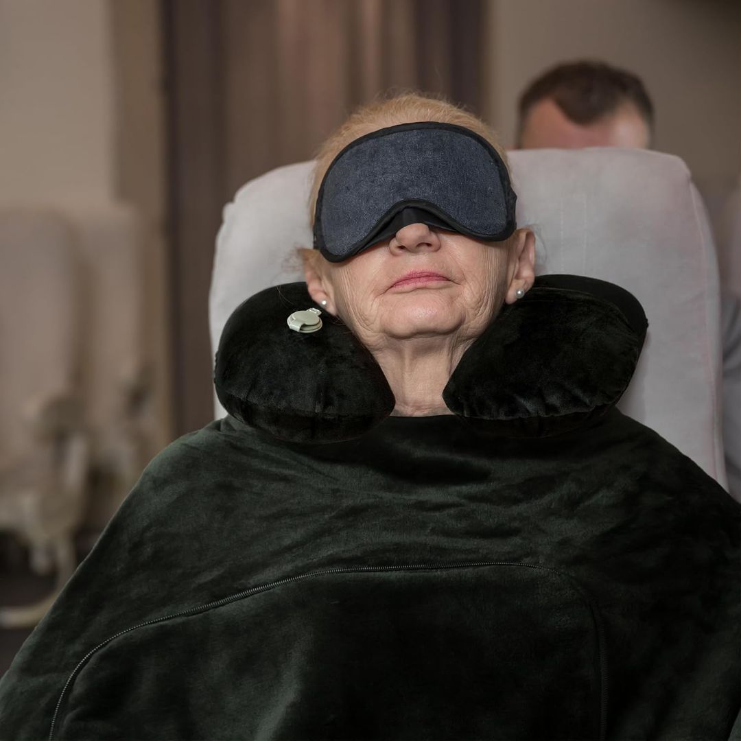 Ultra-Soft Travel Blanket: Crafted from premium microfiber fleece polyester for superior softness, this 70" x 40" blanket features adjustable snaps around the neck and shoulders to keep it in place. Machine washable for easy care.
