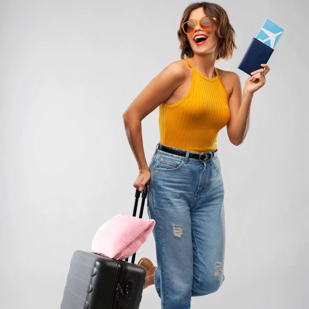 Inflatable Travel Pillow: Includes a soft fabric neck pillow with a built-in inflator pump for hygienic inflation—no mouth inflation needed. Quick deflation via a transparent air valve.