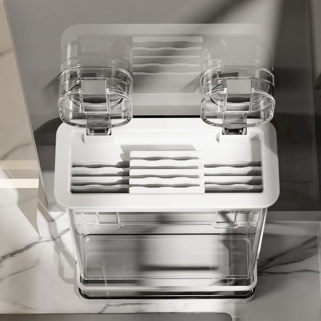 Easy to Clean: Removable structure with a water tray to keep countertops dry and knives clean.