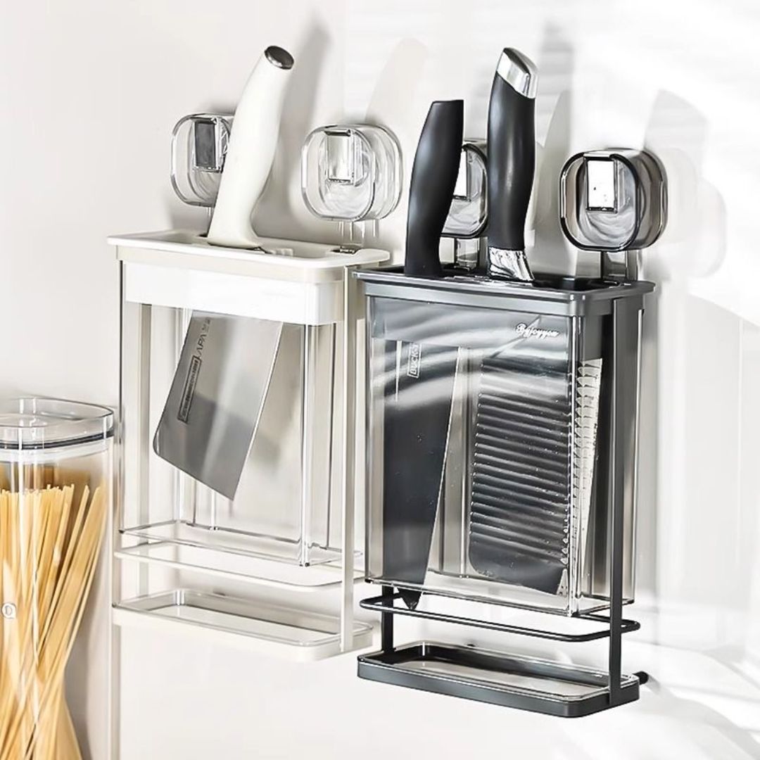 Space-Saving Design: Wall-mounted knife rack frees up counter space while keeping knives within easy reach.