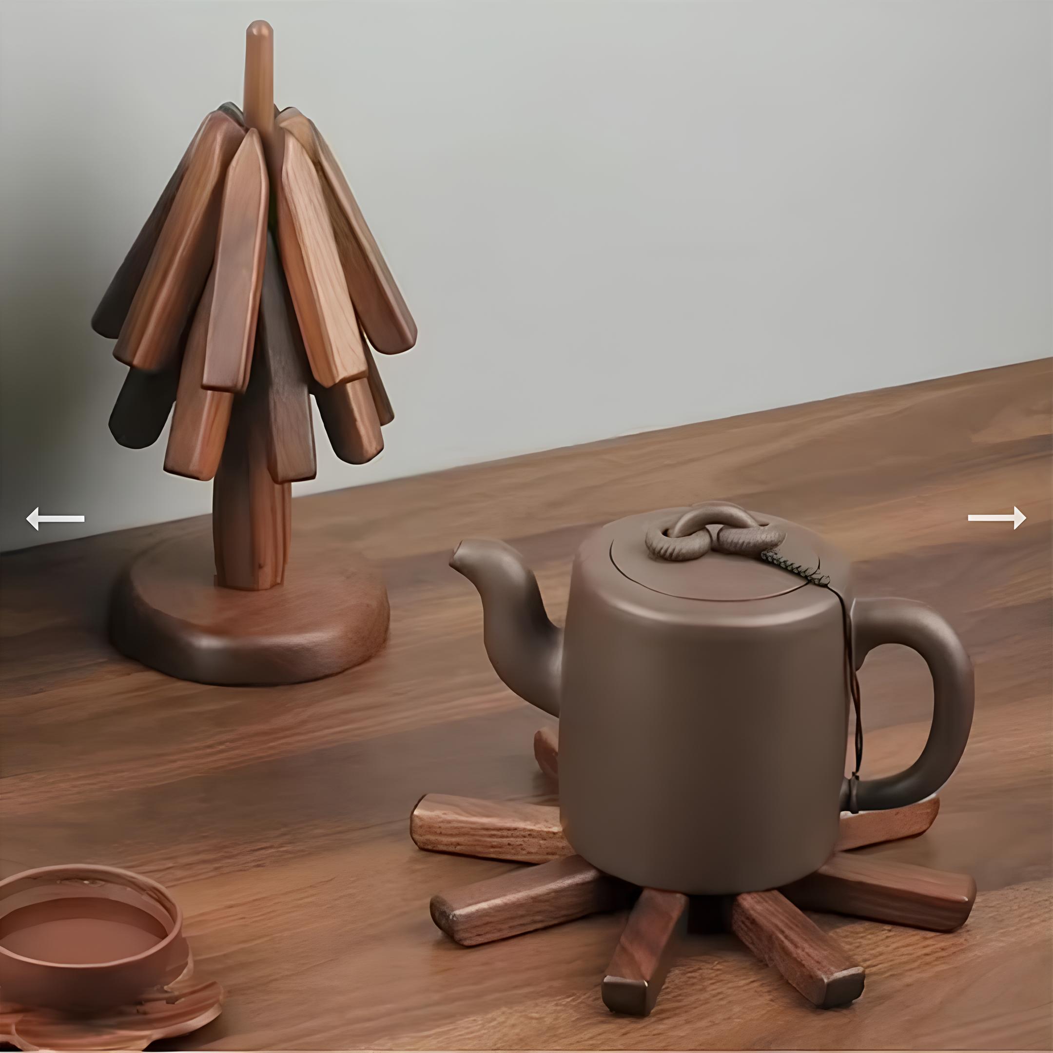 Tree Shape Trivet Set: Made of wood, this set includes 3 trivets and a bracket, protecting countertops and tables from hot dishes.