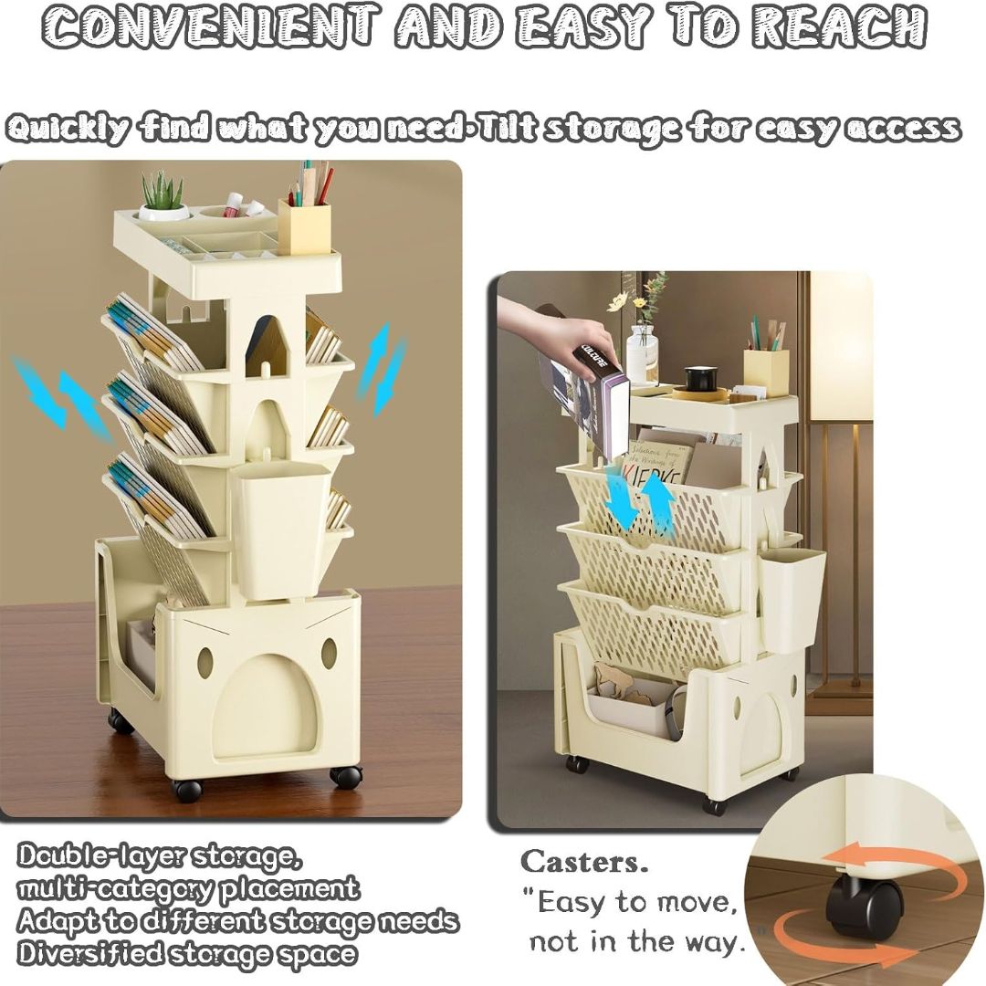 Large Capacity – Multi-layer storage with book organization on both sides.