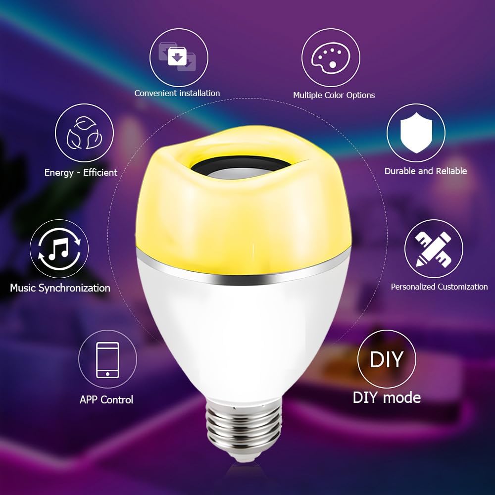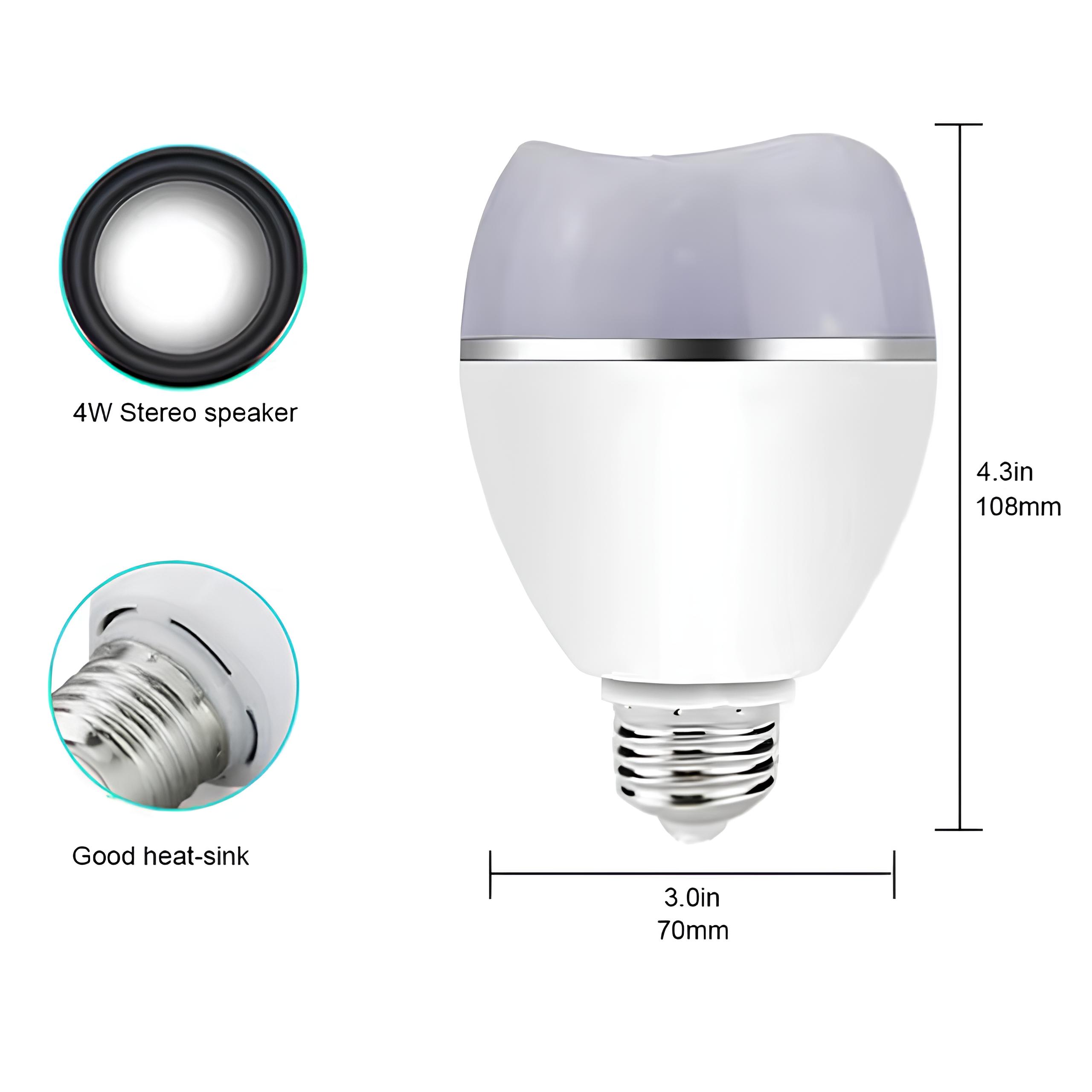 Multi-Functional Design – A combination of an LED light bulb and a built-in speaker, allowing for both illumination and music playback in one device.