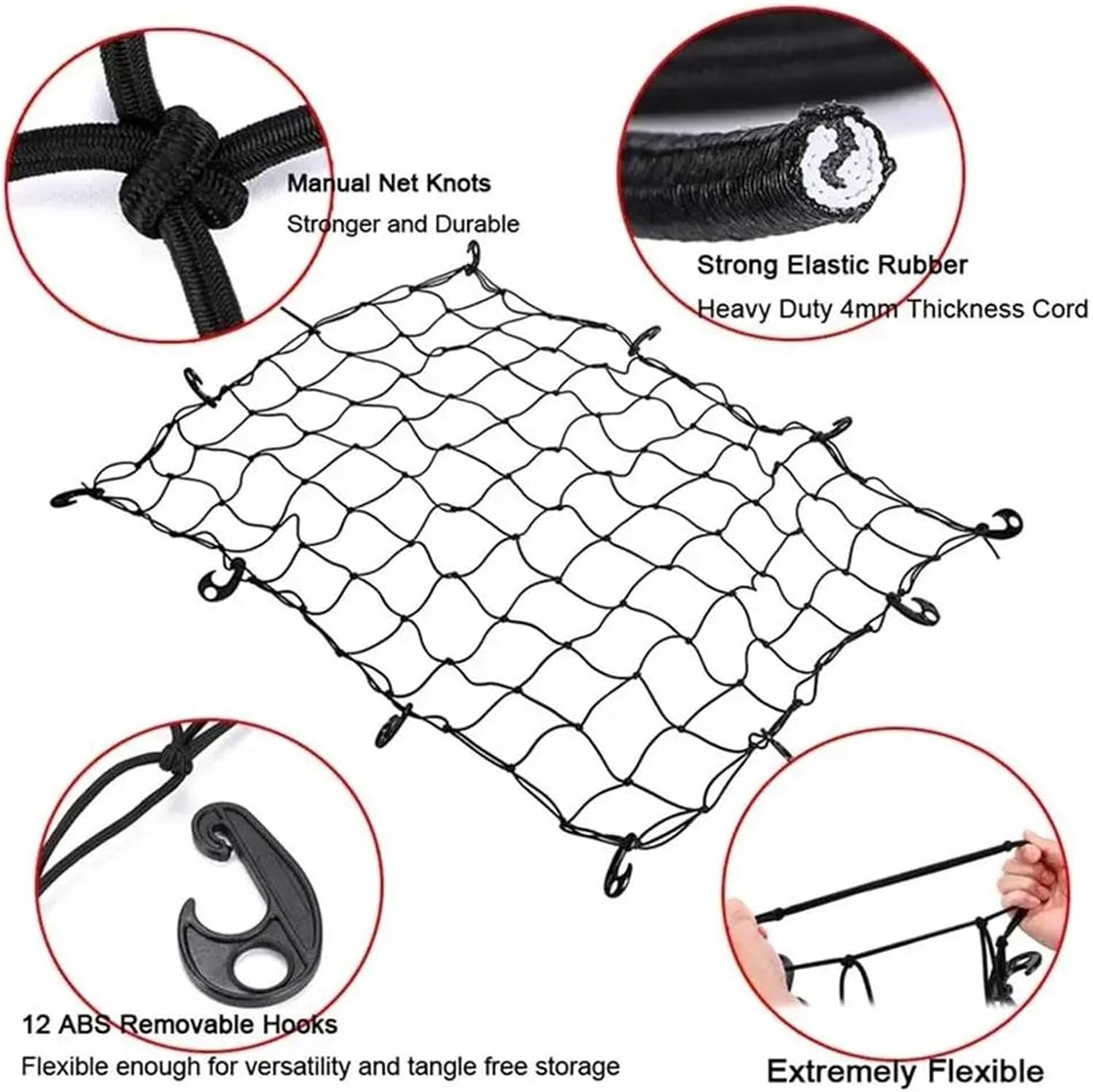 Spacious & Versatile Fit – With an expanded size of 80*120 cm, this net is large enough to accommodate different types of cargo, including helmets, luggage, baskets, and outdoor gear. It is suitable for motorcycles, bicycles, snowmobiles, and other vehicles.