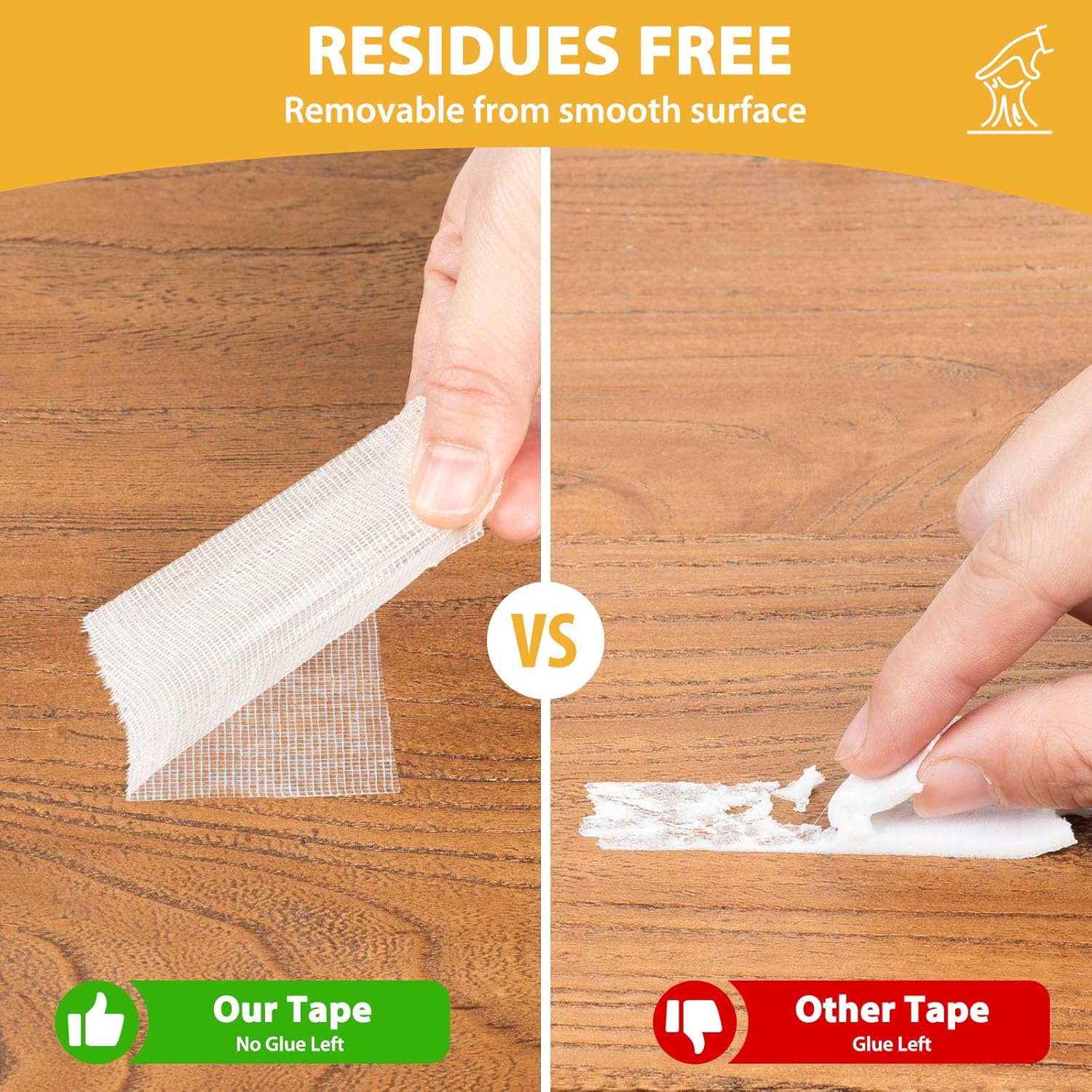 - No Mess, No Residue: The tape is designed to leave no sticky residue on surfaces like tiles, glass, hardwoods, or plastics, even after repeated use, providing a clean application.