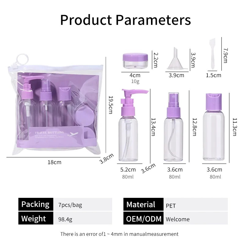 Portable and Lightweight: Compact and easy to carry, these bottles are perfect for travel, fitting seamlessly into your bag or luggage without adding extra weight. The four color options (purple, green, magenta, and yellow) make it fun and easy to organize your items.