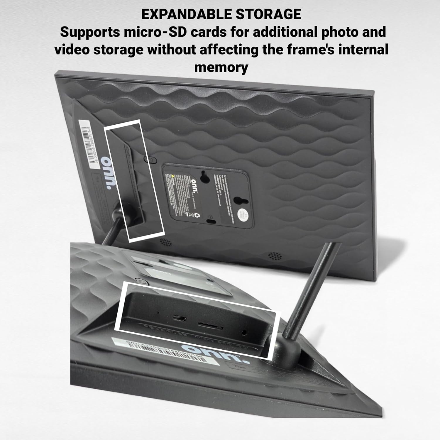Instant Wireless Sharing: Easily share photos and short videos from anywhere via the app. The digital photo frame supports Wi-Fi and comes of built-in storage, plus Micro SD card support (up to 32GB).