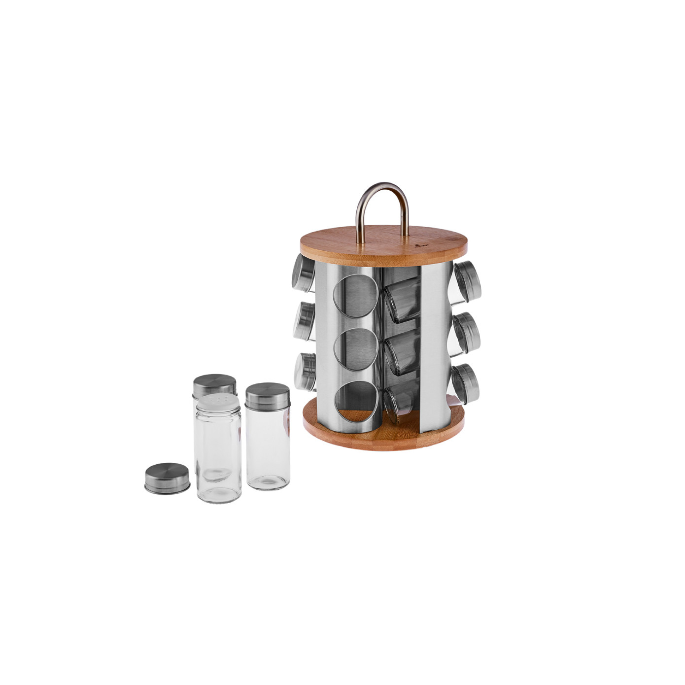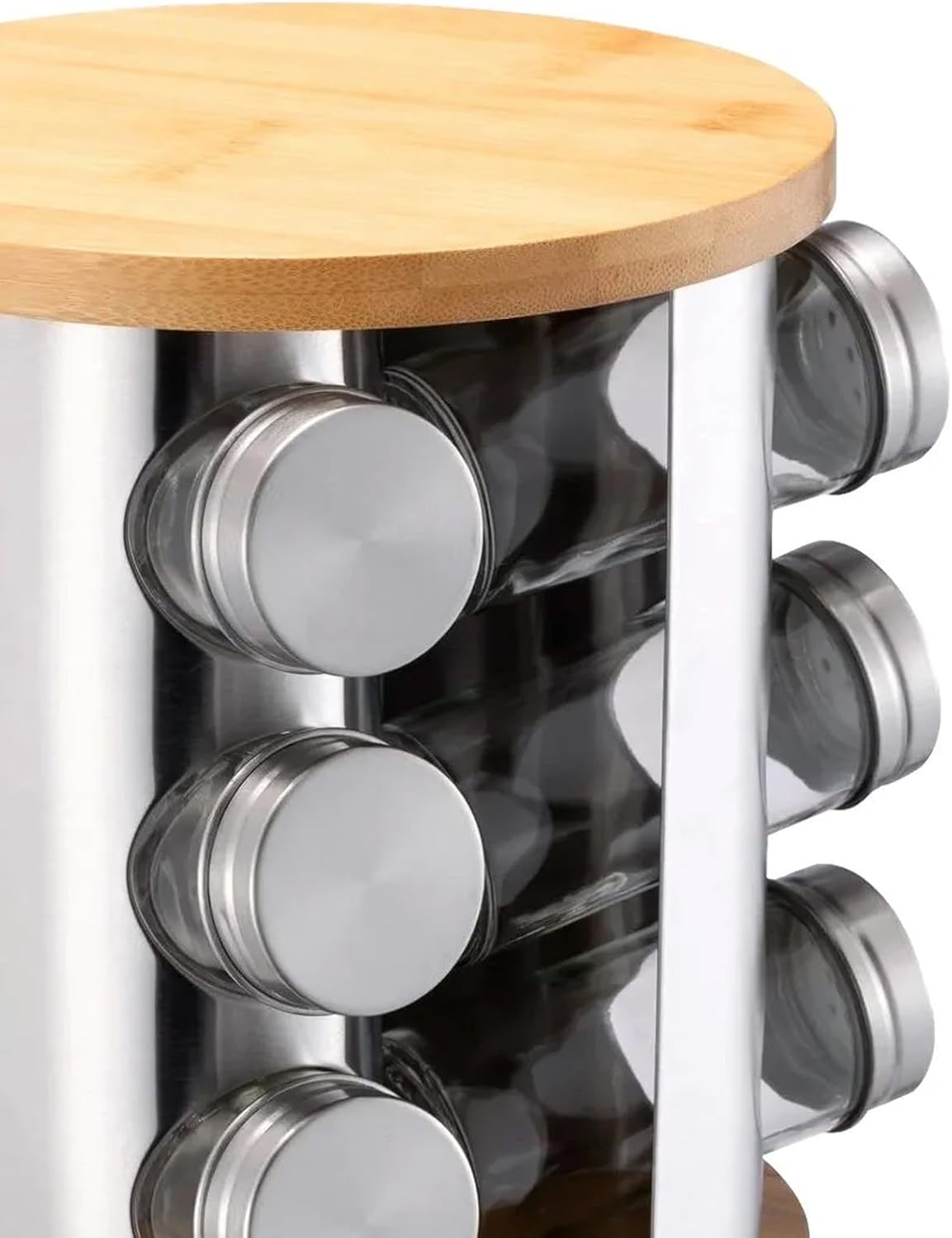 Smart & Stylish Design: This rotating spice rack offers easy access to your spices, whether on countertops or in cabinets. Its combination of sleek wood and stainless steel adds a modern, sophisticated touch to any kitchen.