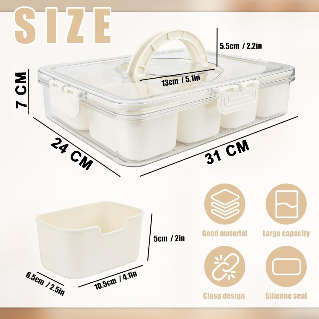 8-Compartment Design – Features 8 removable, transparent dividers to keep snacks, fruits, vegetables, spices, and more neatly separated and organized.