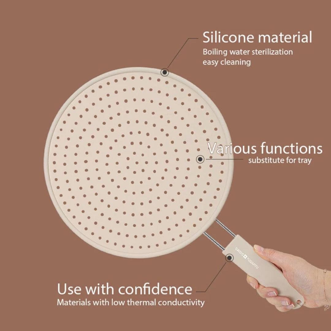 Steam Discharge Design: Features multiple perforated holes that allow steam to escape during cooking, making it perfect for frying food. These holes also make the guard multi-functional—it can double as a heat-resistant tray or a strainer.